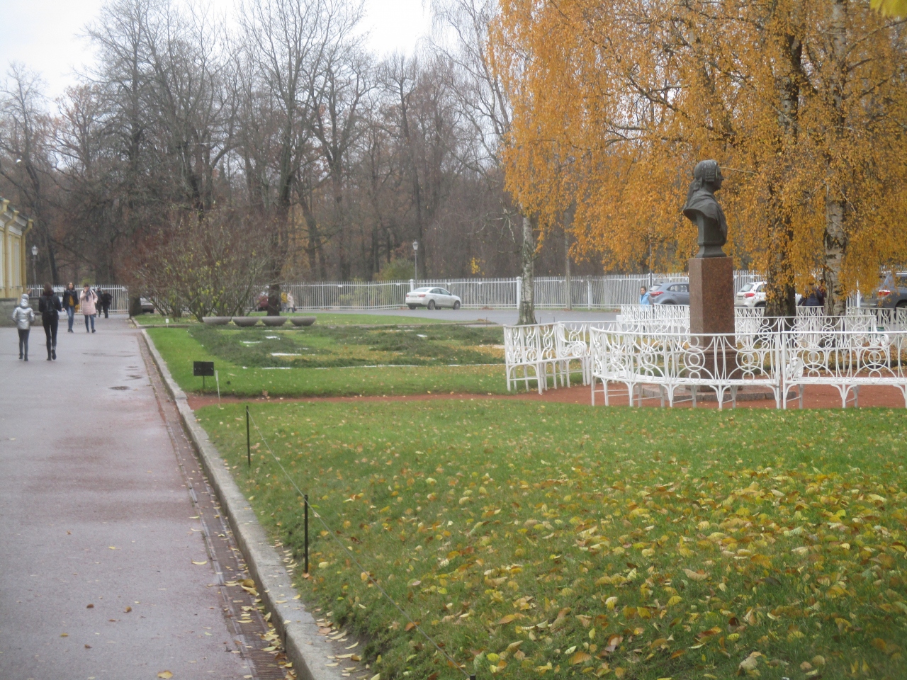 エカテリーナ宮殿の入場口近くに小さい広場がり、そこにラストレッリの胸像がありました。イタリア人建築家ラストレッリによってもエカテリーナ宮殿が建てられたので、その功績をたたえてのことだと思いますは、小さい広場だからなのか上半身だけというのが少しおもしろかったです。