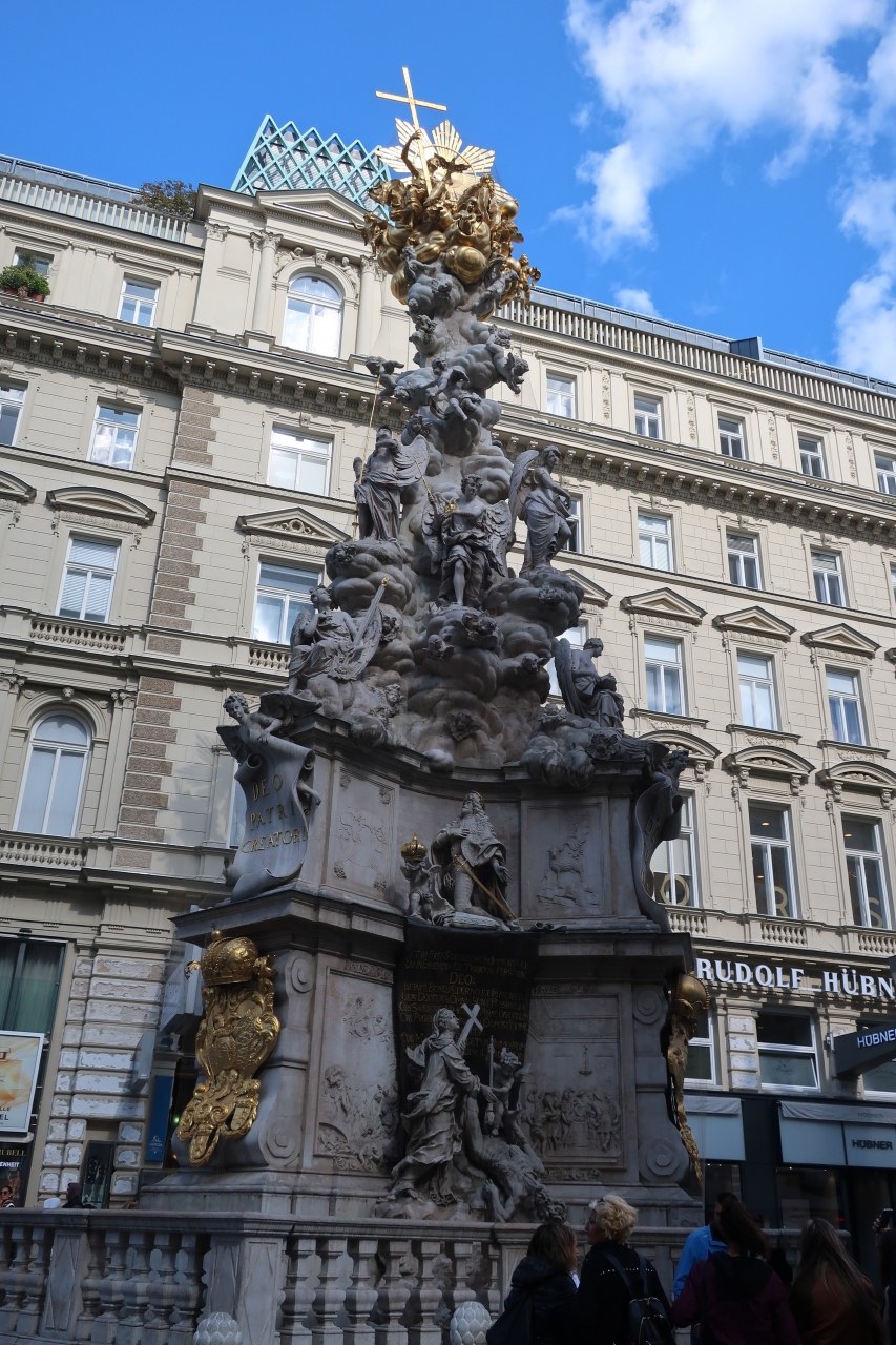 グラーベン通りに立つ記念塔で、ペストの終焉を感謝するために立てられたとのこと。塔に施された金色の彫刻が印象的でした。思いの外、写真などを撮っている人は多くありませんでした。近くにはペーター教会があり、必見です。