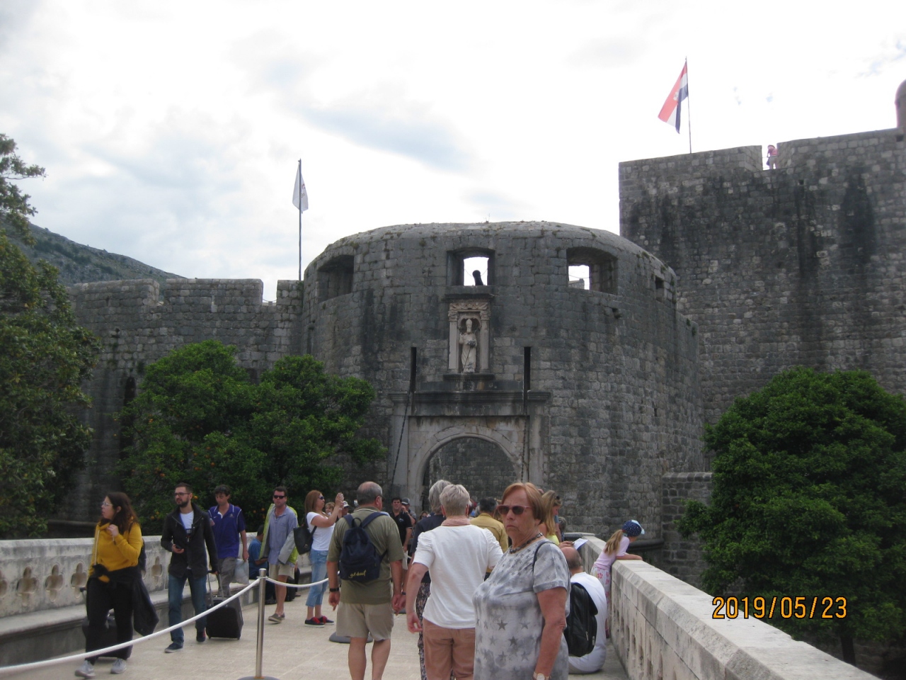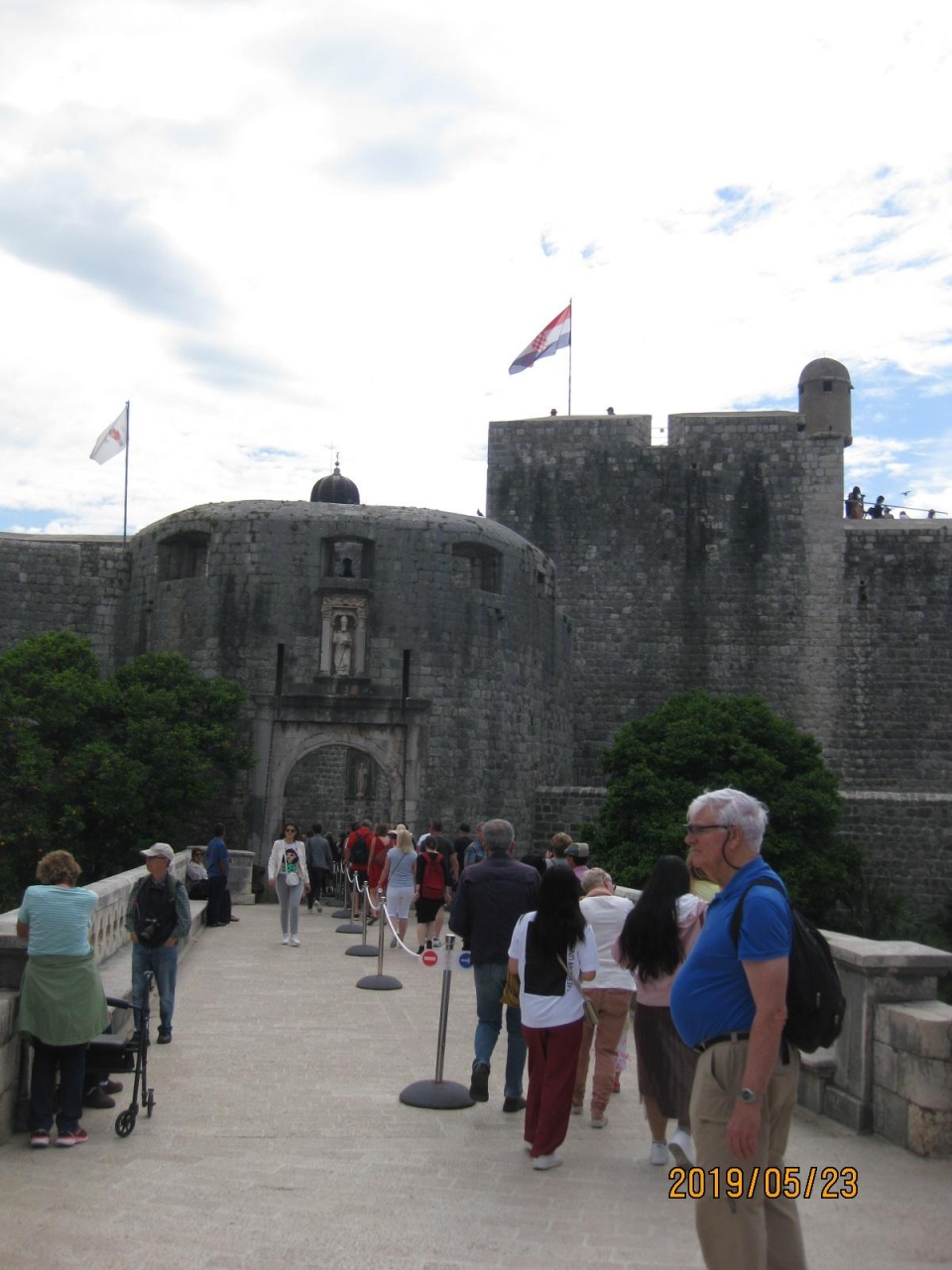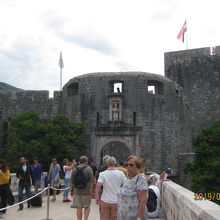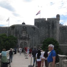 近くにはバス停や観光案内があり一番メインの門なので橋の幅も大きく、人も沢山いました。
