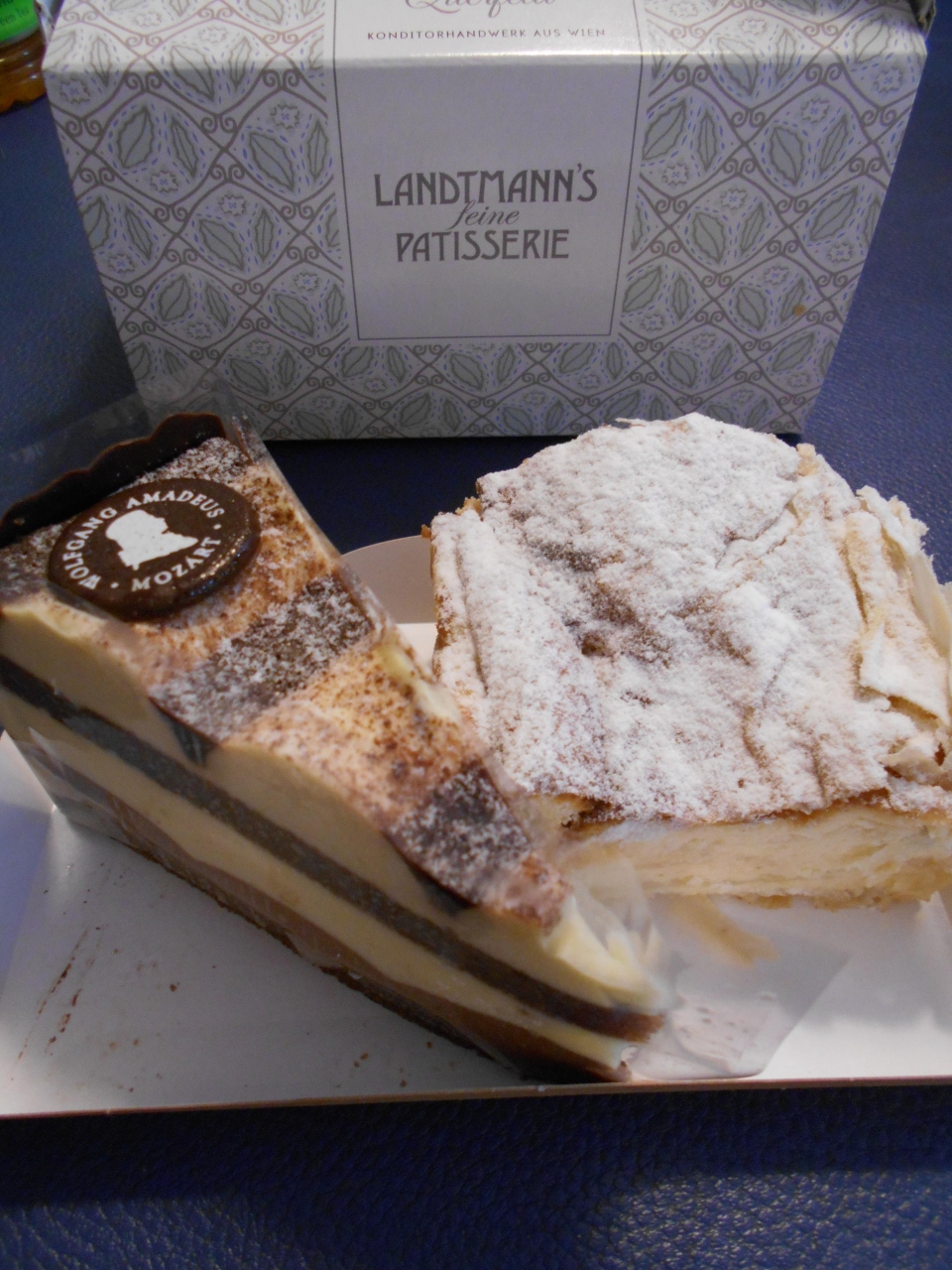 混んでいたので、名物のモーツアルトトルテとリンゴのケーキを持ち帰りにしました。