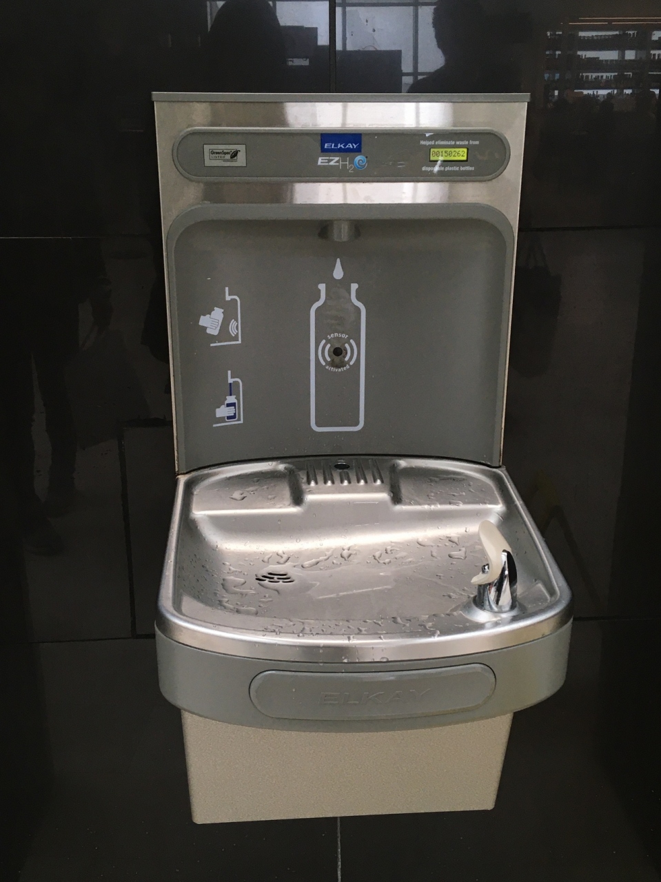 街中で水筒を持ち歩くアメリカン人を多く見かけました。空港内にも無料で利用できる給水器があり利用している人がいました。直接飲むよりボトルに入れる人が多いです。空港内価格の600ml程度のコーラ3.5ドルを買うより良いです。