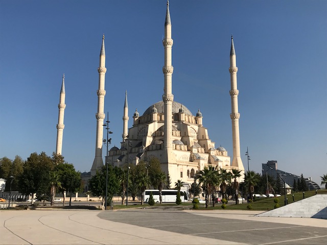 アダナの街を歩いてみて一番素晴らしかった場所です。有名な石橋から遠くに立派なモスクが見えたので行ってみました。6本のミナレットがある立派なモスクでまるでイスタンブールのブルーモスクのようです。近くの道が渡りにくいので地下道で渡りました。モスク内も立派でした。これが個人寄贈のモスクだとはとても思えませんでした。