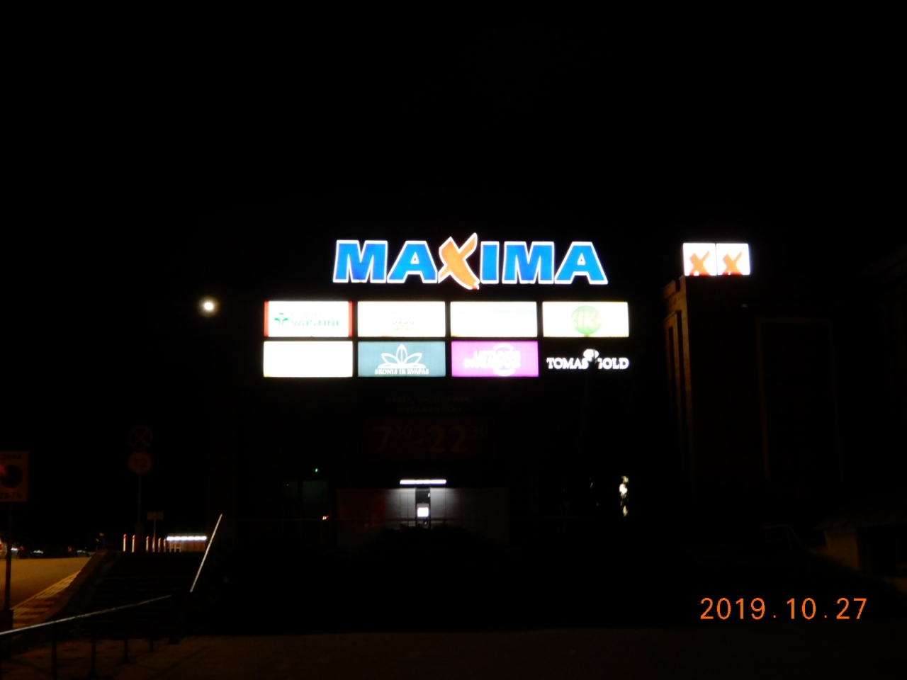 ロゴのMAXIMAのネオンは青くて「X」の文字のみ赤色になっています。よく目立ちます。