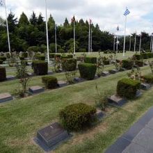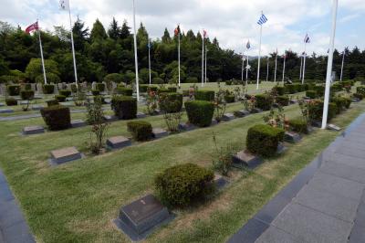 朝鮮戦争の際に、釜山周辺で戦死した16カ国の国連軍兵士と医療支援4カ国の非戦闘員2300人が眠る墓地で、各国毎に分かれた区画には、それぞれの国旗が建てられています。