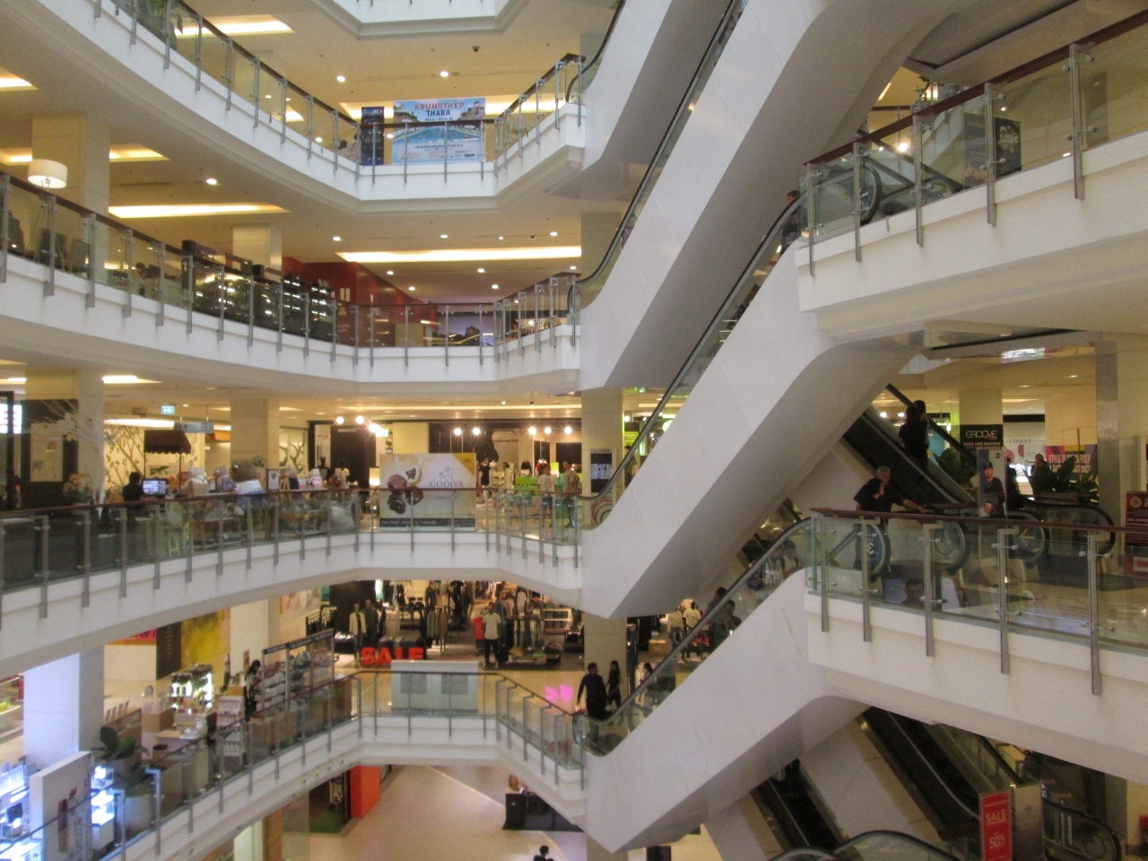 夏季休暇期間中の時期に訪問しました。ここに行けば何でも揃うバンコクの大型ショッピングセンターです。チットロム駅から入店すると日本では見かけない複数階をノンストップで結ぶエスカレーターなど、おもいしろい構造をしていました。