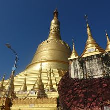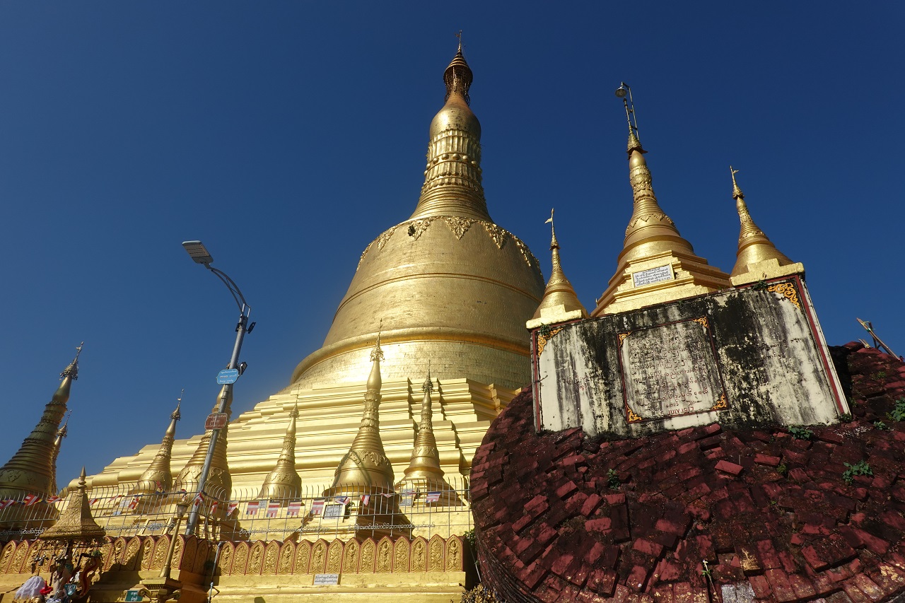 バゴー最大の見所。地震崩壊の対応など、何度も改築が加えられており、現在のパゴダは1954年に再建されたものとなっています。高さは114mで、ヤンゴンのシュエダゴンパゴダの99.4mより高いです。金色で覆われた塔の中腹部には小さな木が生えており、鳥が種を運んだと言われています。