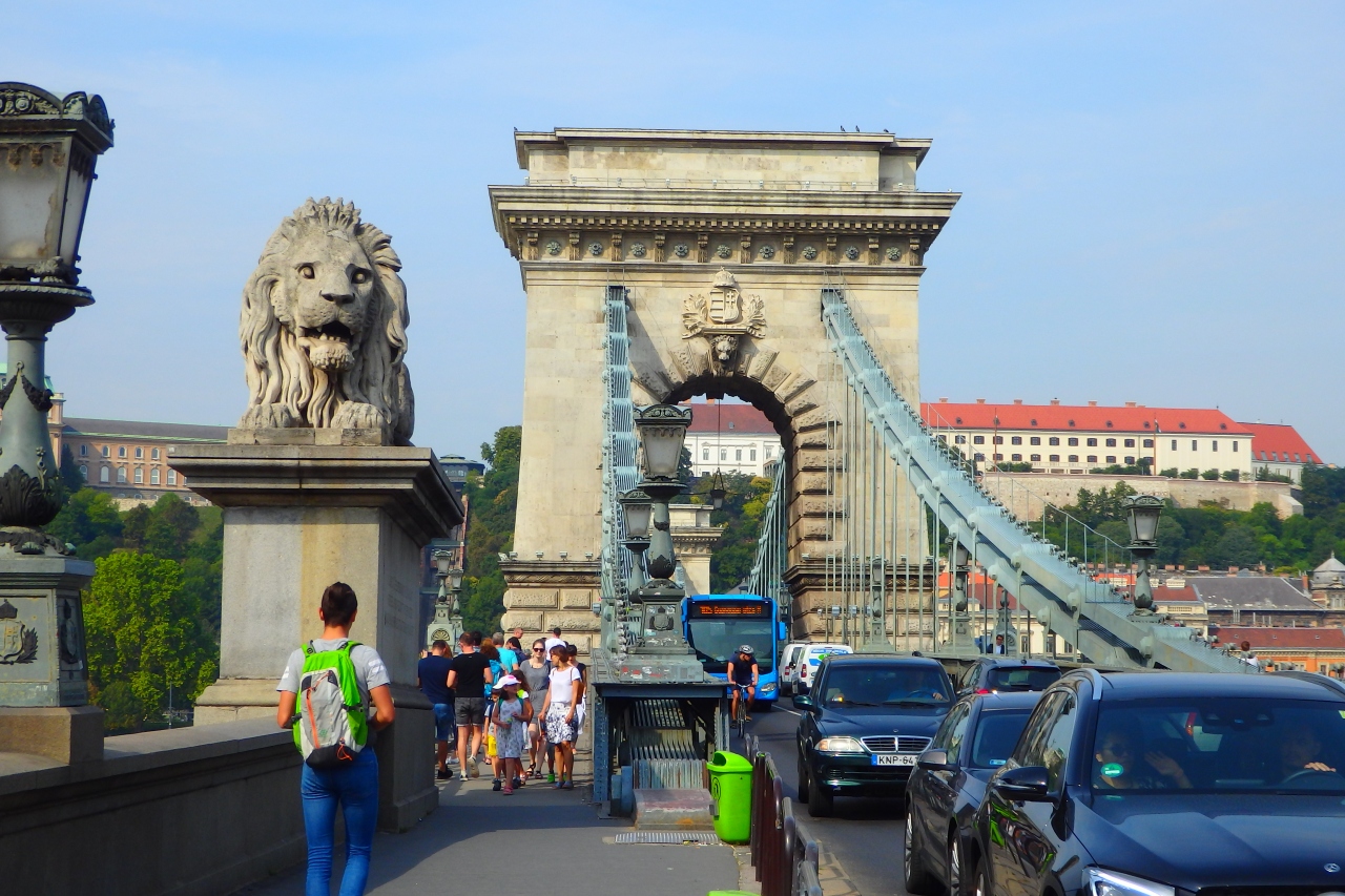 ベスト側からブダ城へ行くのに、歩いて渡りました。橋の両サイドから近いとことにトラムの停留所があり、橋まで行く交通の便は悪くありません。