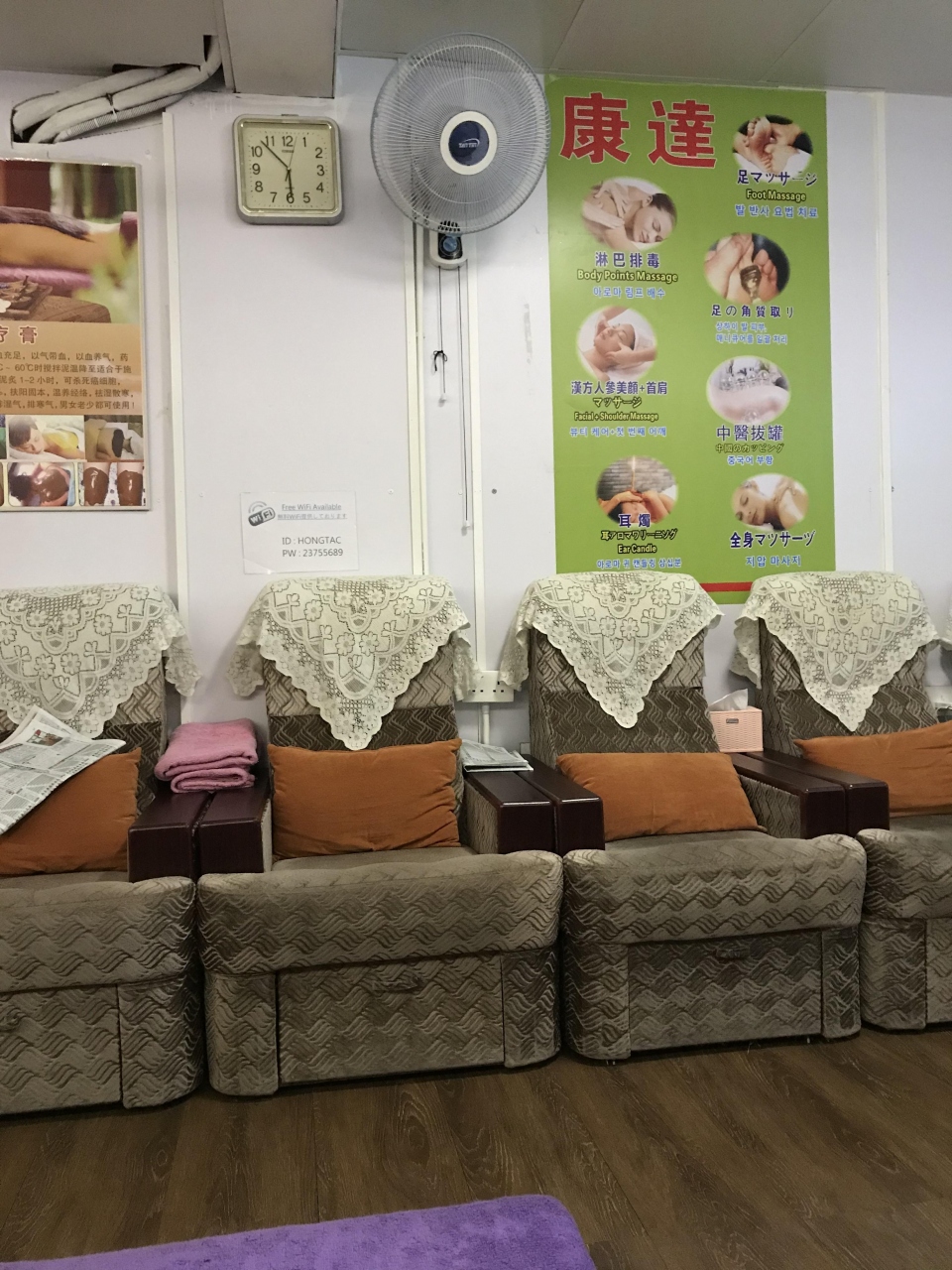 JCBプラザで、お勧めのお店と紹介してもらい、予約の上来店しました。スタッフは、簡単な日本語を話せました。全身と足つぼマッサージ、30分ずつの1時間コースでした。