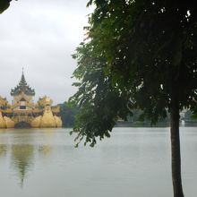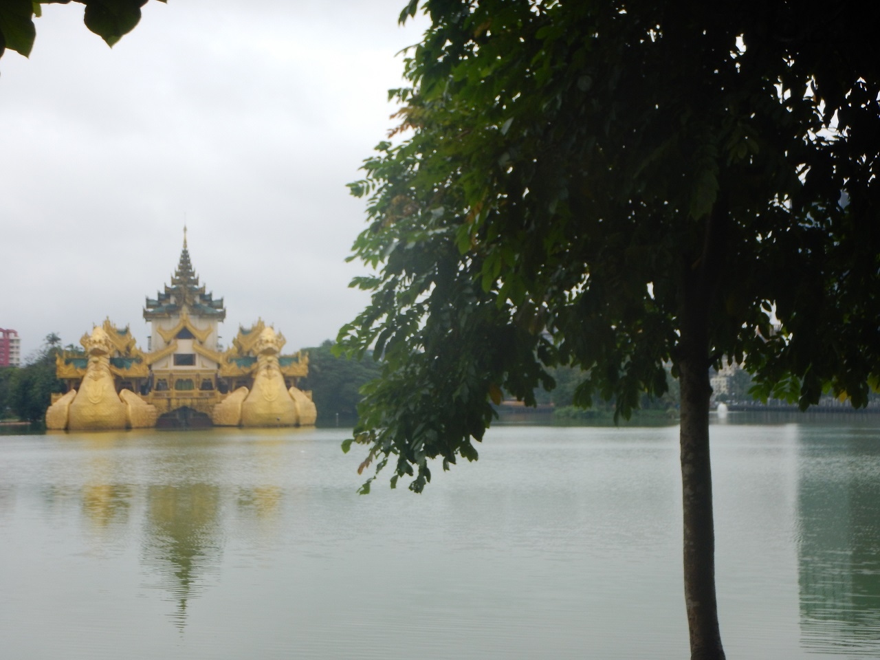 街の中心から北に1kmほど離れた場所にあります。高級水上レストランのカラウェイパレスの金ピカな船が特徴的です。湖の横は公園になっており、チンロン(ミャンマーの蹴鞠)をする人、散歩をする人など、市民の憩いの場所となっています。