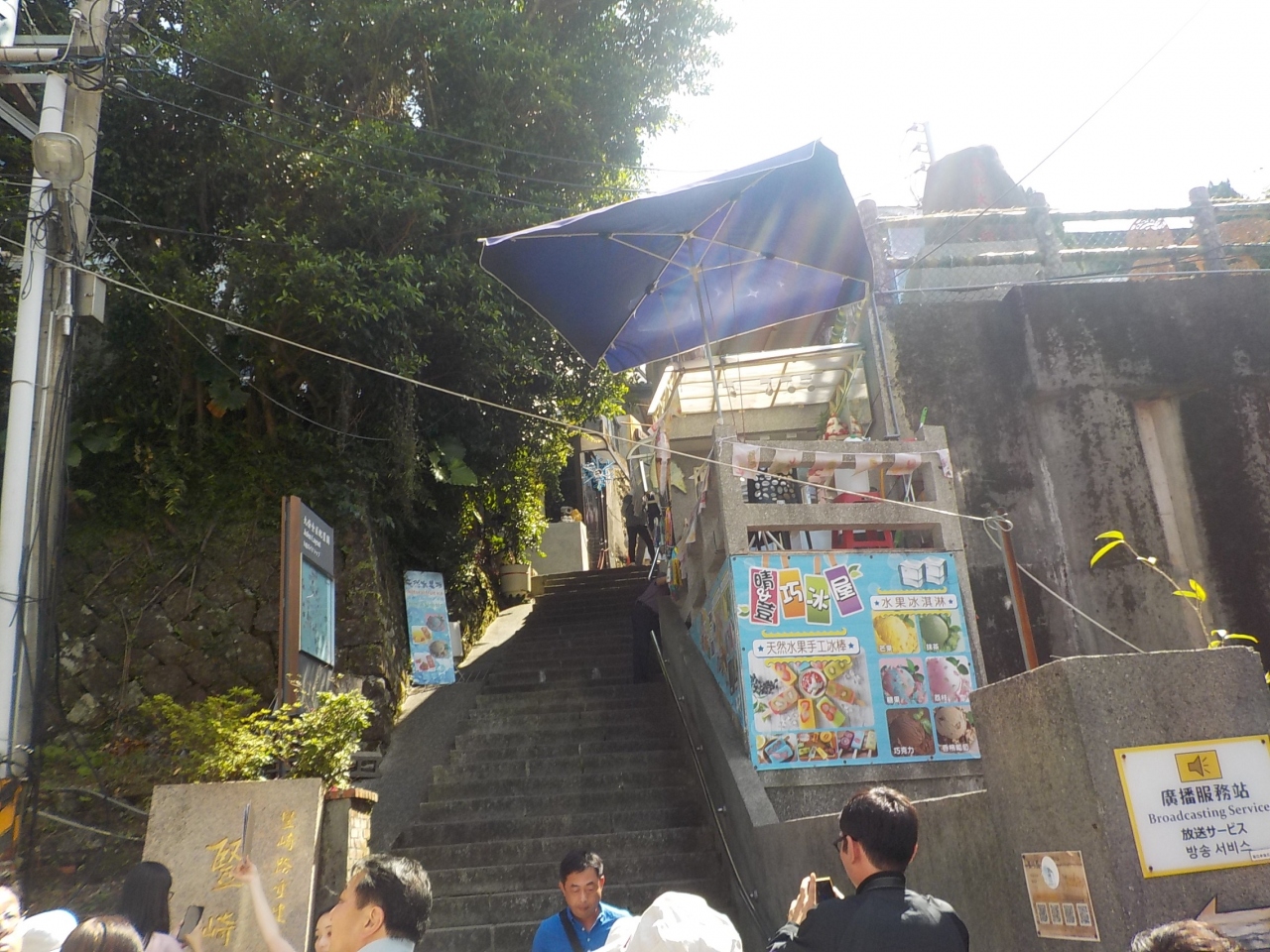 昼間のバスツアーで行きました。駐車場から坂道を登っていき、交番の方からが入り口で、広場まで150段、いきなり階段なので、体力の自信がない方は、団体客の最後尾で上った方が良いです。列がつながってるので休んでいる暇はなく、一気に登ったので、息切れと足ががくがくしました。階段が急です。見晴らし台まで行くと、平たんなので、人が多くても、階段よりはましです。そこからの景色は、良かったです。晴れていたので、とても遠くまでよく見えました。