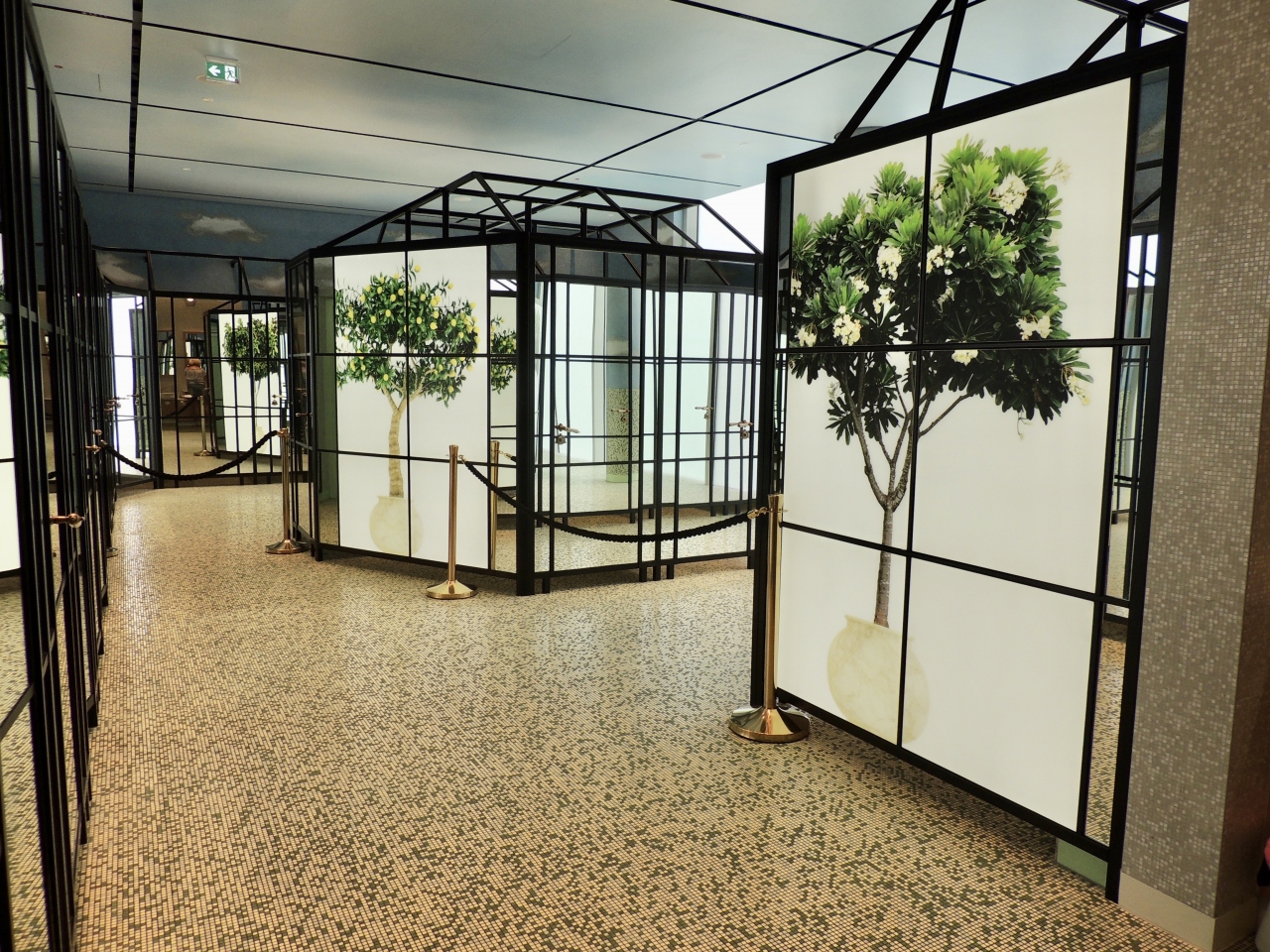 長いエレベーターで特徴のある建築デザインを鑑賞して楽しめる。早朝で急にトイレに行きたくなり、最上階の有料トイレを使ったのですが、トイレの内装が素晴らしく、お金を払っても後悔はない。地下にスーパーREWEがあり、ここはほば24時間営業です。
