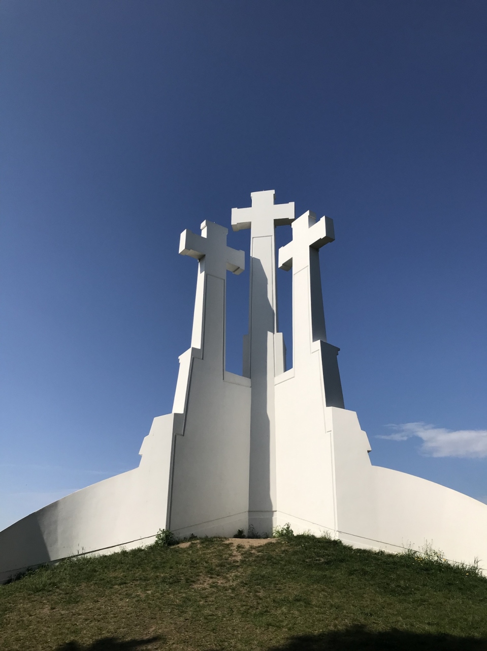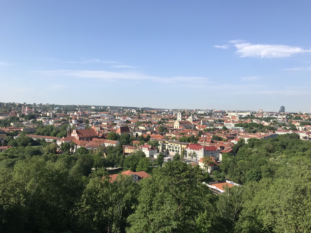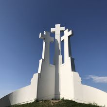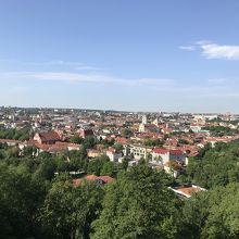 ゲディミナスが工事中で上がれそうもなかったので、急遽、反対側に見えていた十字架の丘へ行ってみることにしました。携帯の地図を見ながら歩いていると、ん?この山道のようなところを登るのか!?というところにぶち当たりました。後で知ったのですが、きちんと道路沿いに行けば、少し遠くはなりますがちゃんと着きます。なので私たちは近道である山道を登ってしまったようです。それでも誰かが登った形跡はきちんとあり、10分ほどであっという間に頂上に着いてしまったので、この山道もオススメです。頂上は中国人グループのおばちゃんらが15人ほどいましたが、そこまで人は多くなく、なんといっても絶景で、ゲディミナスもバッチリ見えましたし、こっちの方が良かったかも、と思いました。帰りは道路沿いにゆっくり10分ちょっとかけて降りました。ヴィリニュスの景色を見るならここがおすすめです!