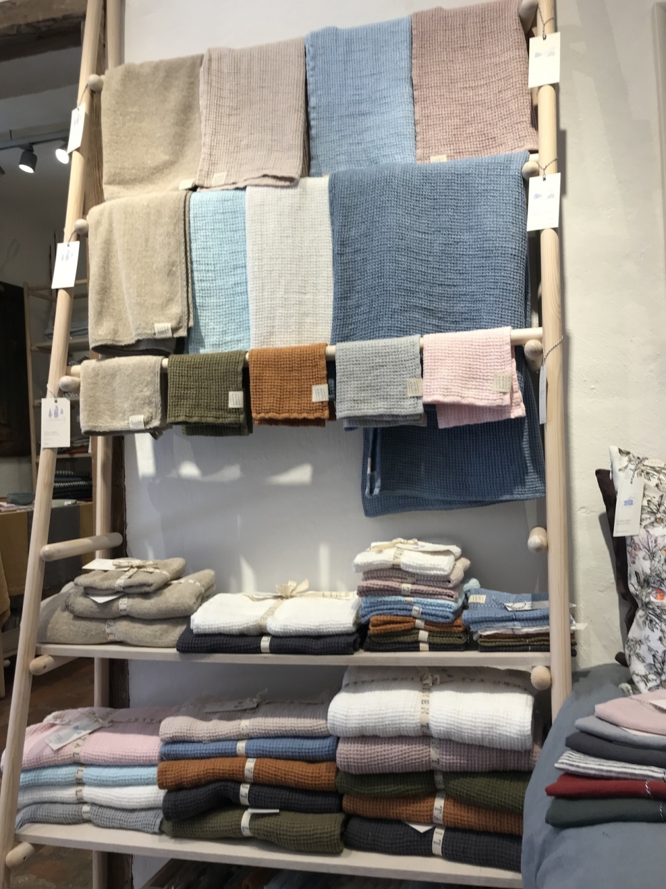 ガイドブックでも目をつけていたこちらのお店。街を散策していたら2軒見つけた気がします。本店支店とあるのかもしれません。いくつかリネンのお店は見て回りましたが、こちらのお店が一番入りやすく、また、見ていてとても楽しかったです。自分の生活に近い、というか、商品が身近に感じられる、そんな雰囲気です。色使いもとてもたくさん揃っていて、本当に迷います。そんなに安い!という程のお値段でもないので、全色買うとなると結構な金額!吟味して10枚ほどフキンを買いました。免税手続きもお店のおばさまが丁寧にやってくださって、いい買い物ができました。外のお店の雰囲気も優しい感じでセンスが良く、これまた何枚も写真を撮ってしまいました。おすすめです!