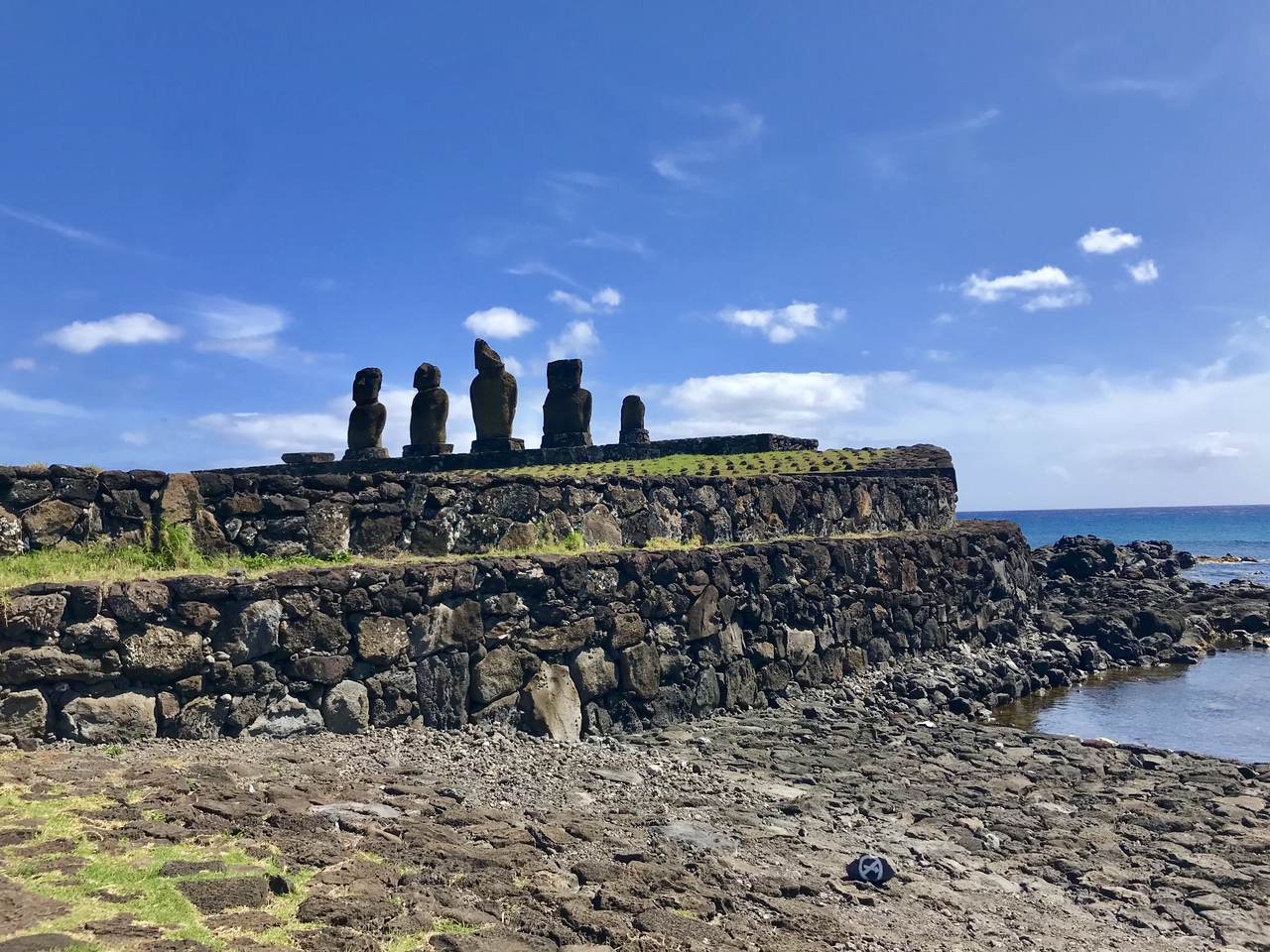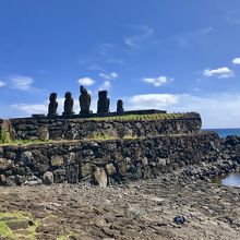 タハイ儀式村には、大きく分けて三種のモアイが立っていますが、この「アフ・バイ・ウリ(Ahu Vai Uri)」は5体並んでいます。
