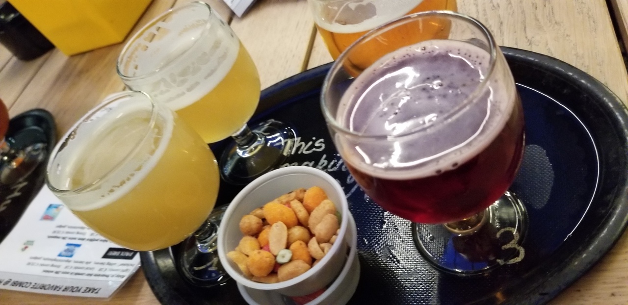 ベルギービール三種類とおつまみのセットがあり、ミニグラスなので、三種類のビールが楽しめました。
