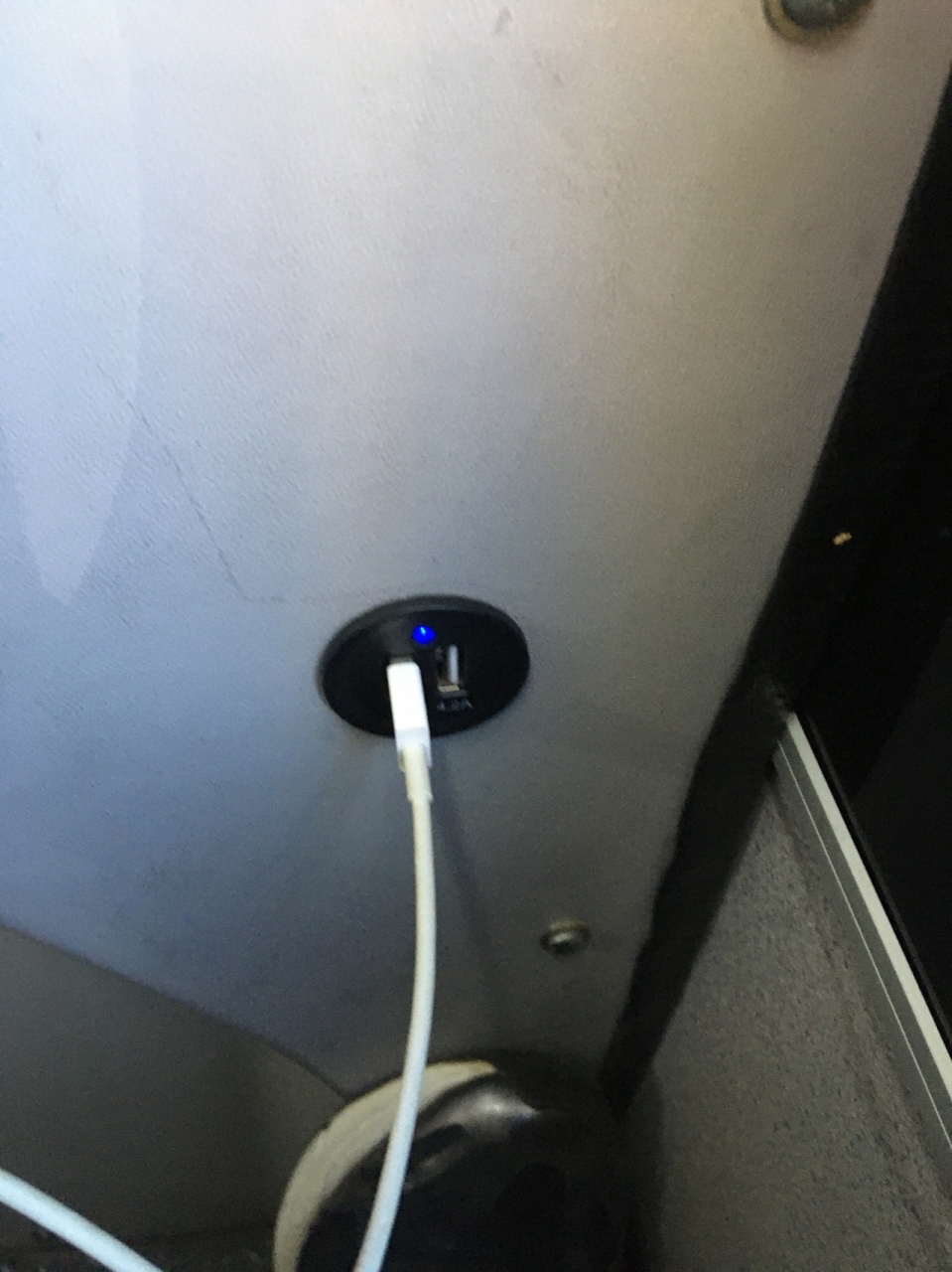 アッパーイーストサイドからセントラルパークを横断してアッパーウエストまで二台連結のバスを利用しました。バス停にある券売機でメトロカードで運賃を払い、レシートを持って乗車します。マンハッタン内の横移動は地下鉄が無いのでバス頼りです。車内にUSBポートがありました。