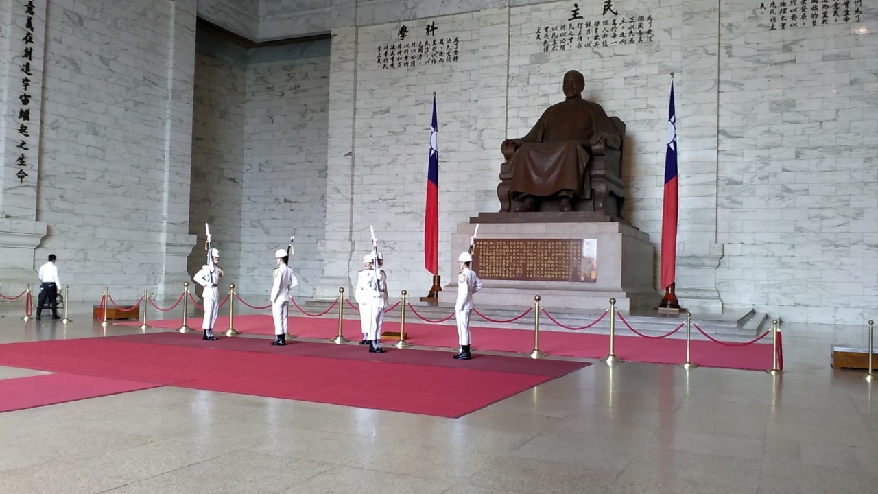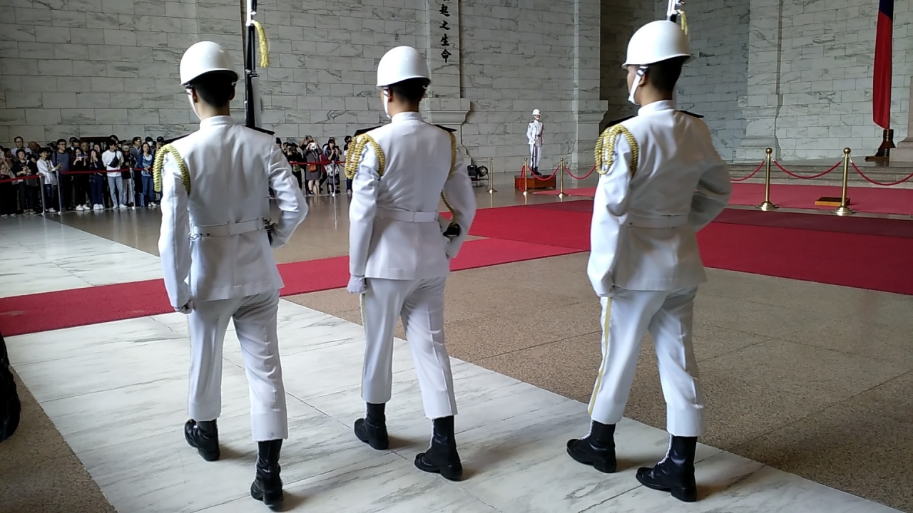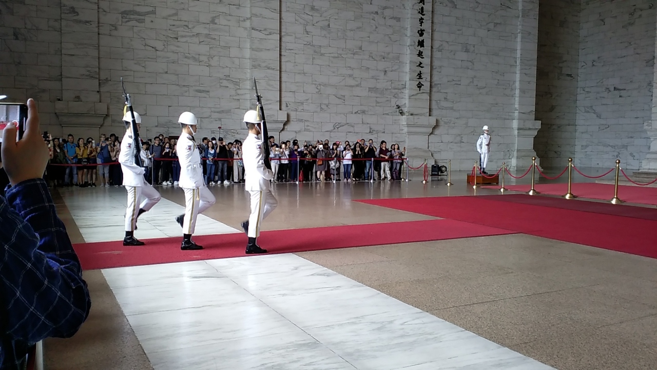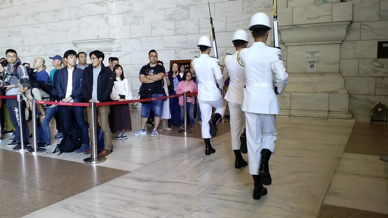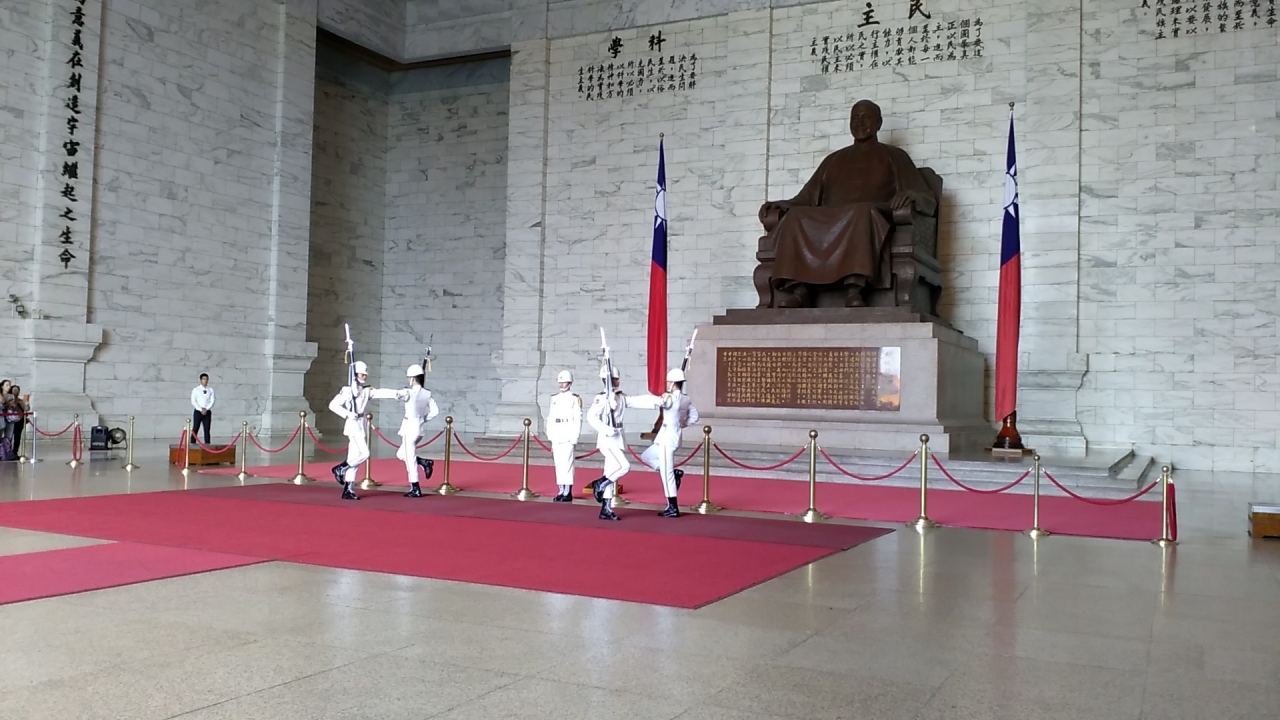 - 中正紀念堂の蒋介石像の前で一時間おきに行われます