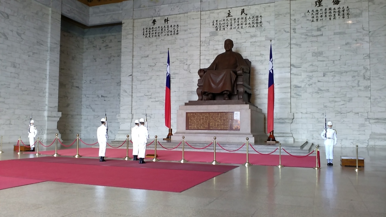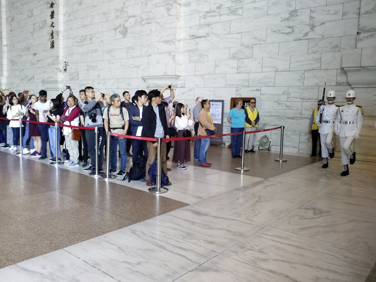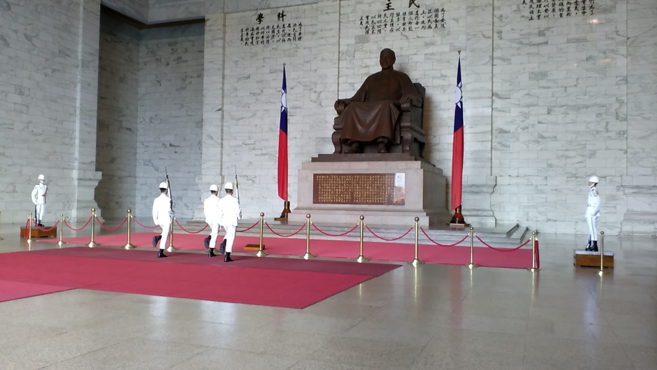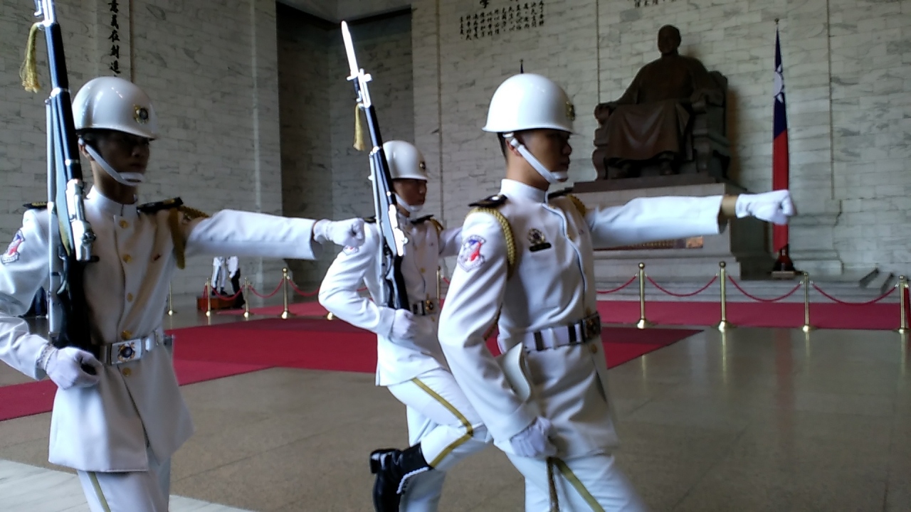 - 中正紀念堂の蒋介石像の前で一時間おきに行われます