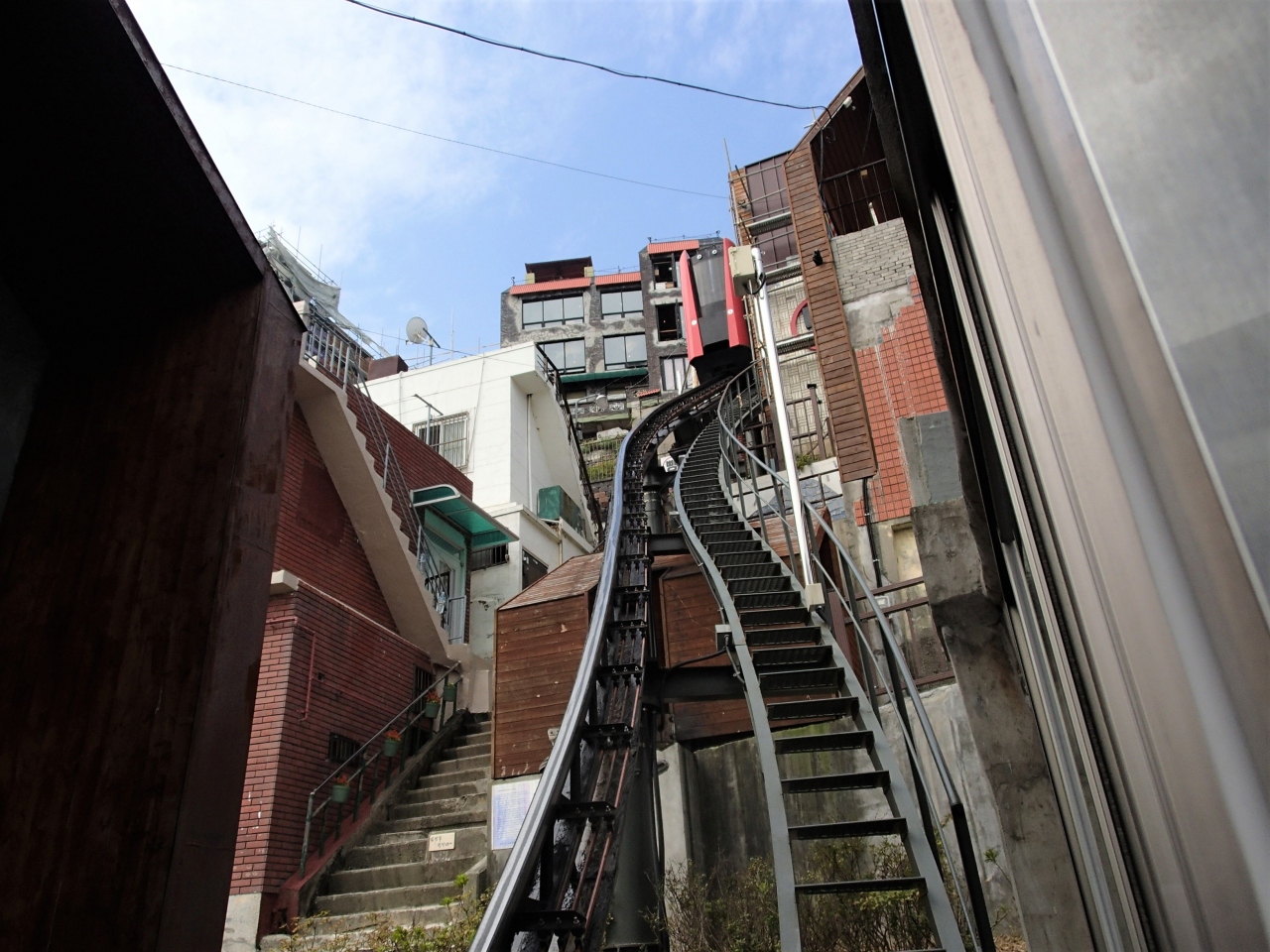 ものすごい急こう配を登っていくモノレールはスリル満点です。