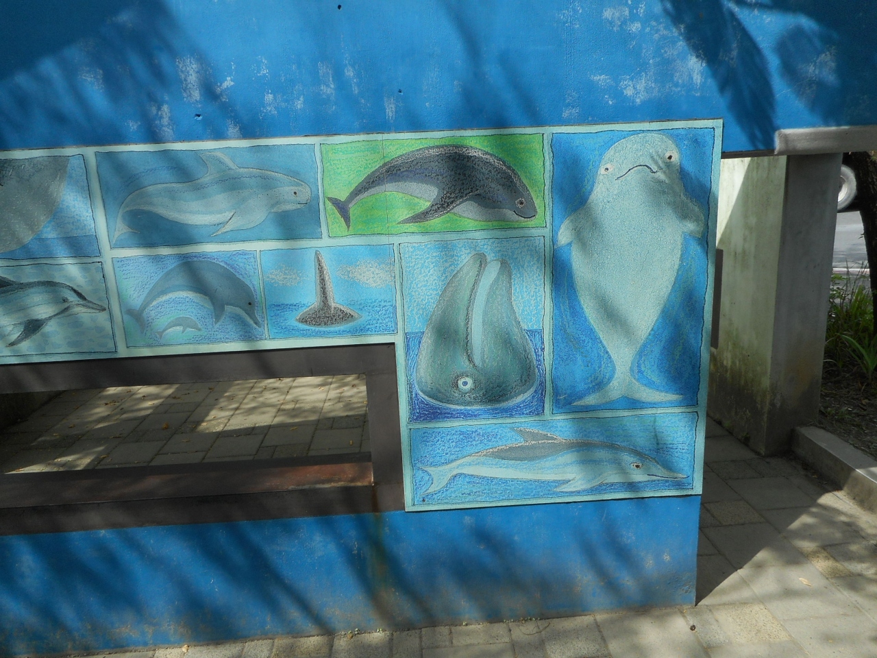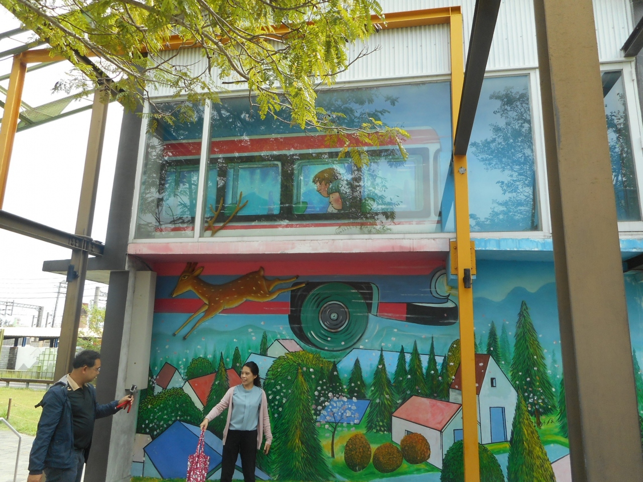 駅舎の側には、案内所があり、線路に沿って下がっていくと、道、ゴール、出会いといったストーリーを現した作品と、海洋自然を現した壁画があります。