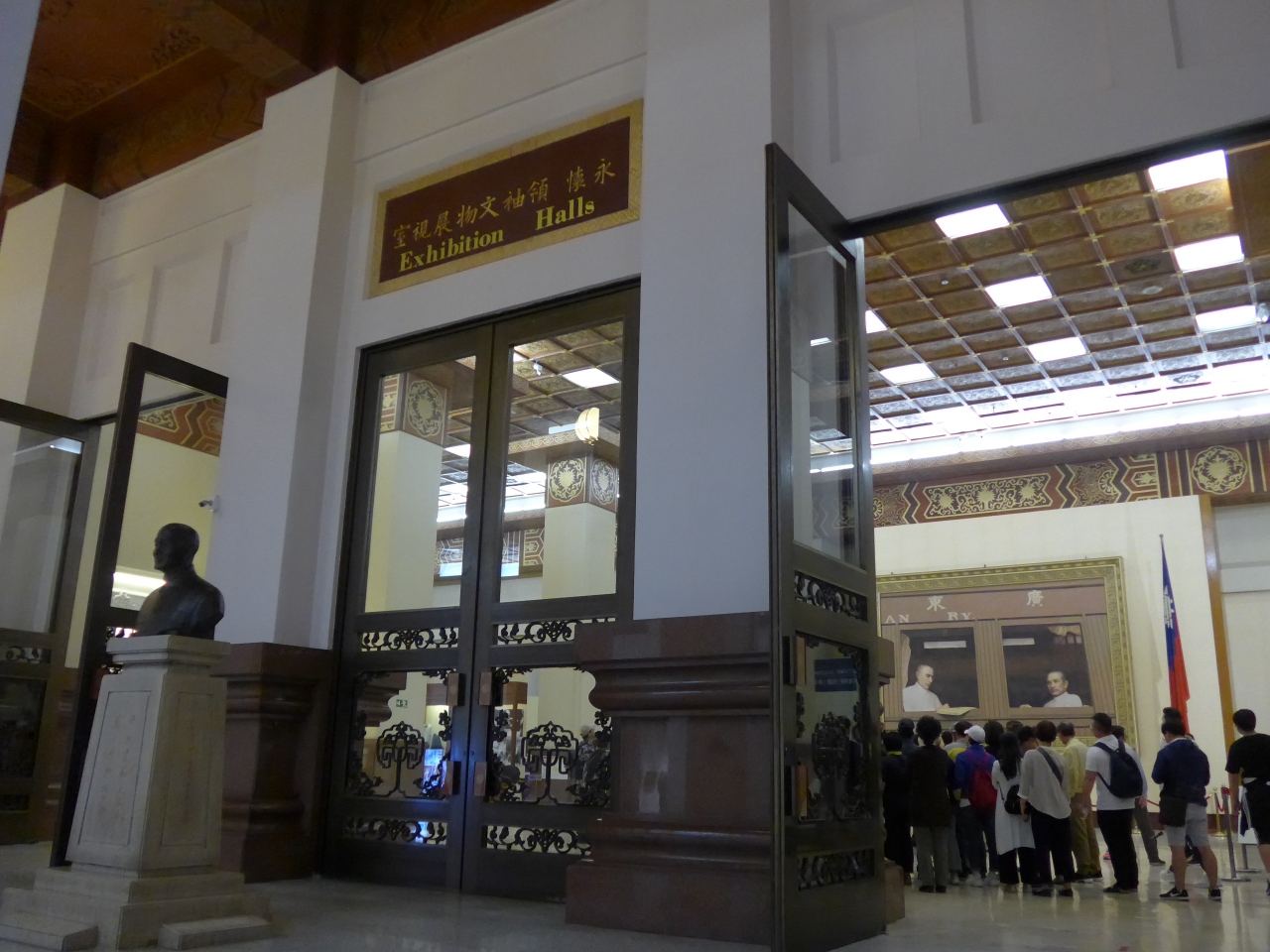 4階の蒋介石像の前で行われる交代式の前に1階の文物展示室(功績を11のパートで紹介)と中央通路(キャデラックを展示)を見物して10分前に4階へ移動しました。