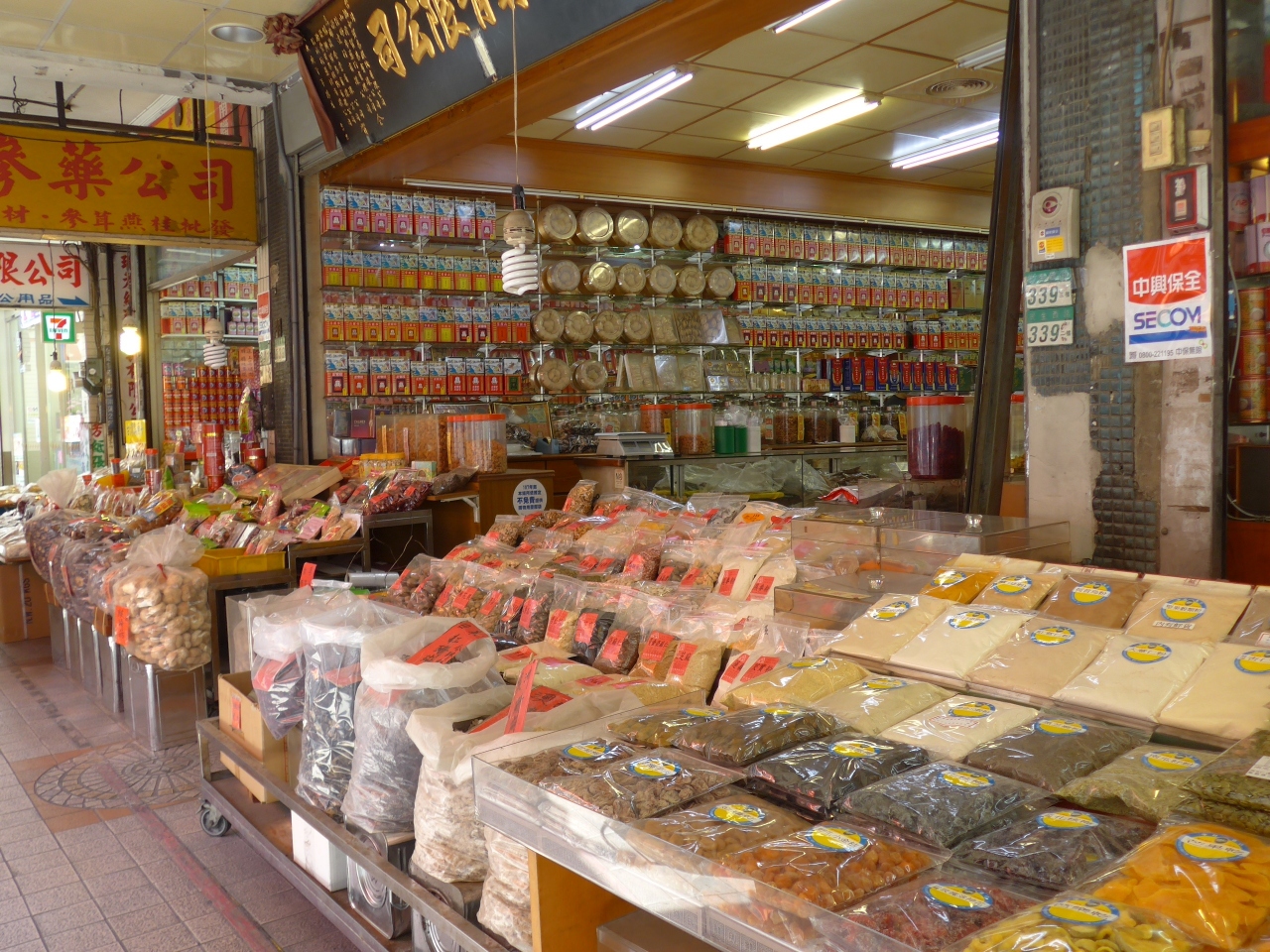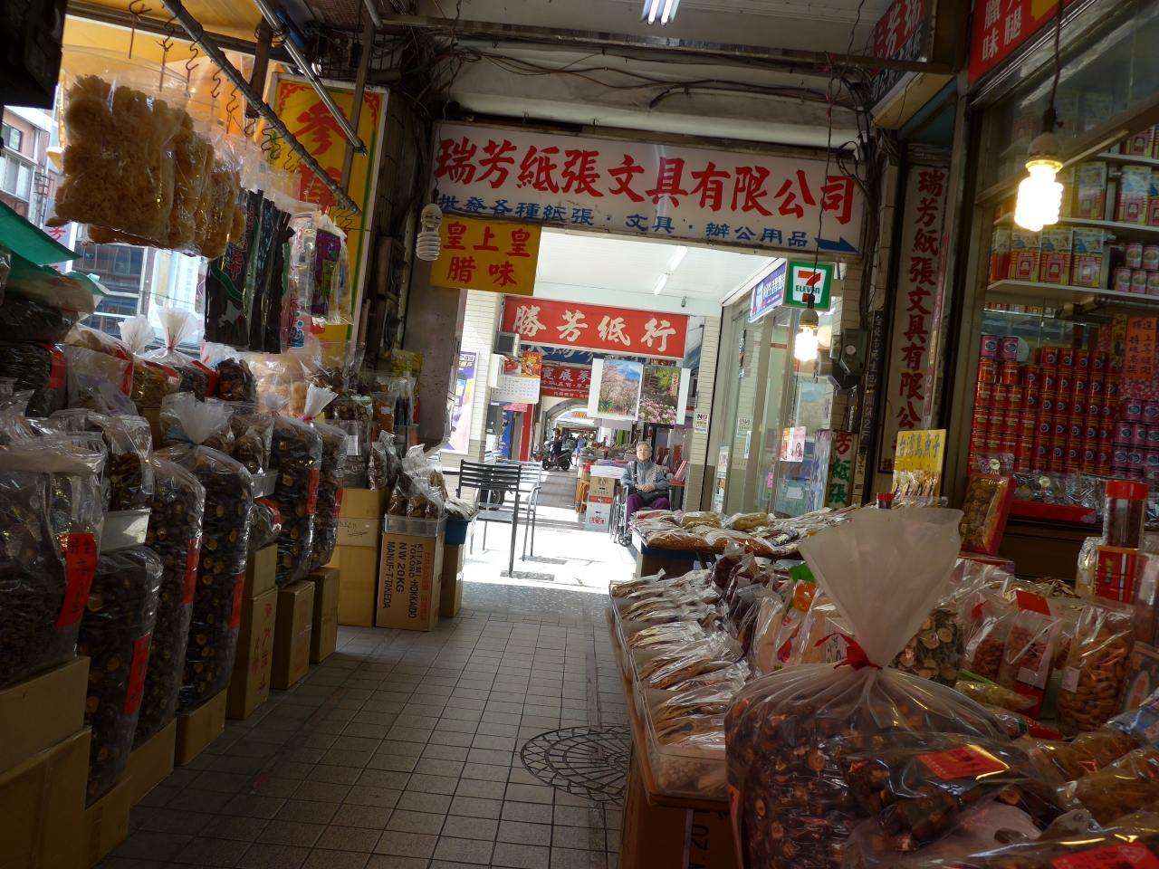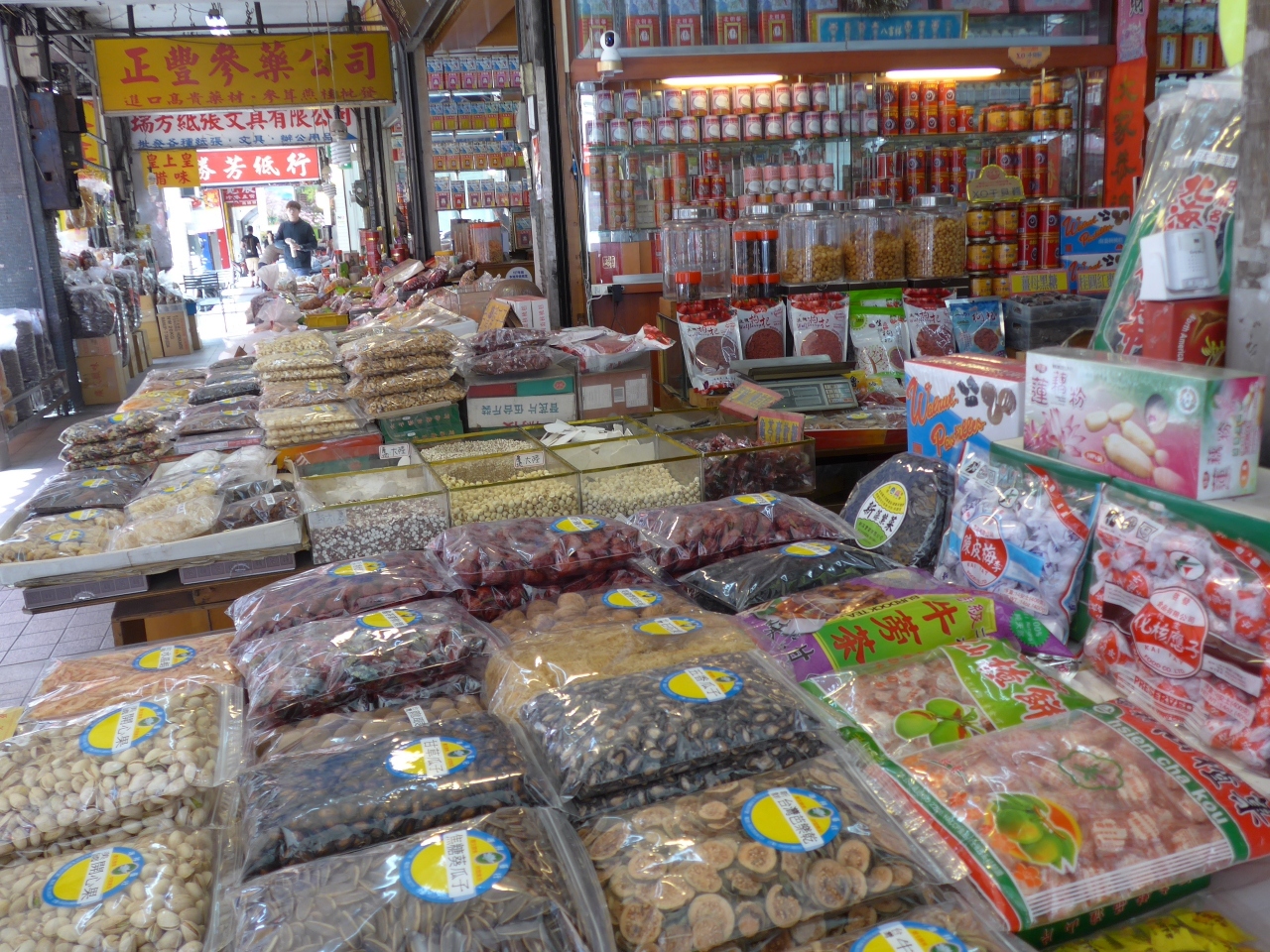 迪化街には沢山の乾物屋が軒先に沢山の商品を並べ歩いて見て回ると楽しくなります!!