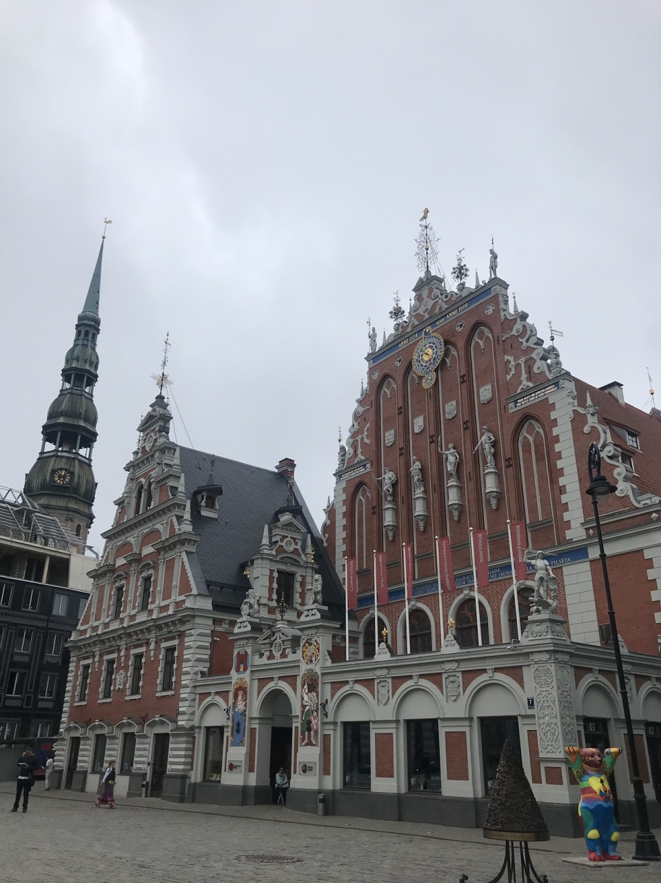 旧市街をふらふらと歩いていたら、なんだか広場に人だかりが。各国の団体客のみなさんが右から左から正面から、写真を撮っていました。建物自体は他の建物と少し違い、そんなに大きくはありませんが見応えがあります。近くのセナクラーツという手袋を主としたお店は日本人をはじめとして、観光客に人気があります。