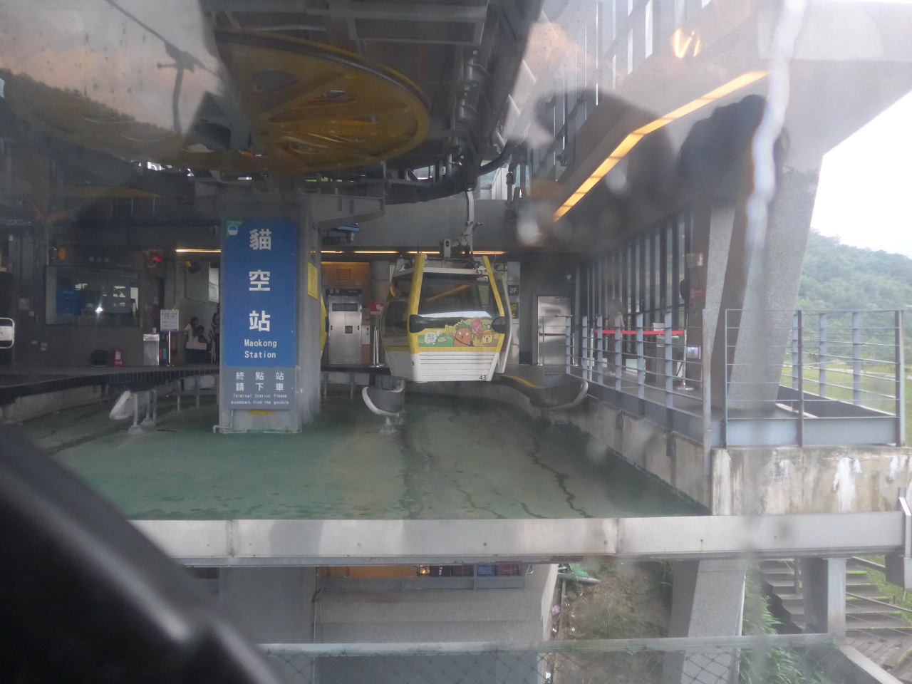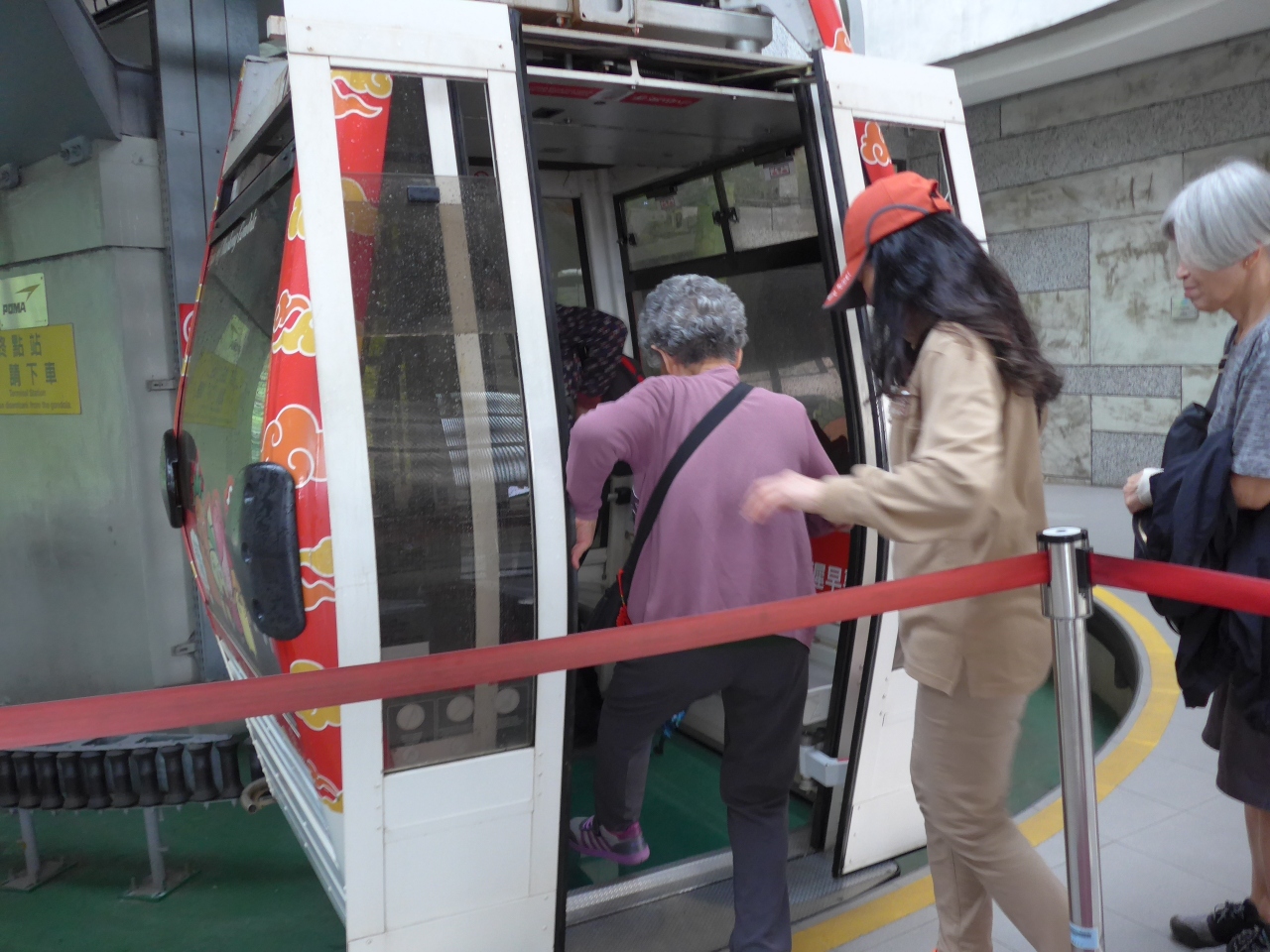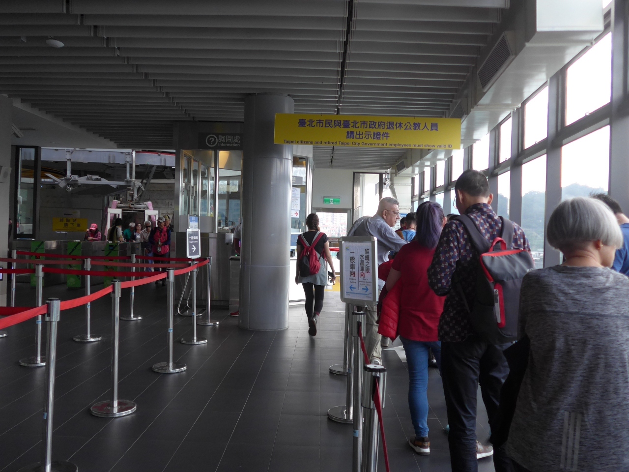 往復の乗車料金は240NT$なので当日の地下鉄利用から換算すればお得なような気がしました。ロープウェイは何と約4Kmととても長くて途中で直覚的に曲がる中継駅もありました。一般車両と水晶(クリスタルキャビン)(床が透明で下が見える)があり一般車両はすぐに乗れますが水晶車両は行列が出来ていて約15分ほど待ちました。