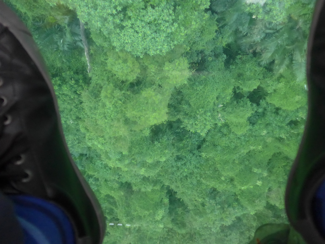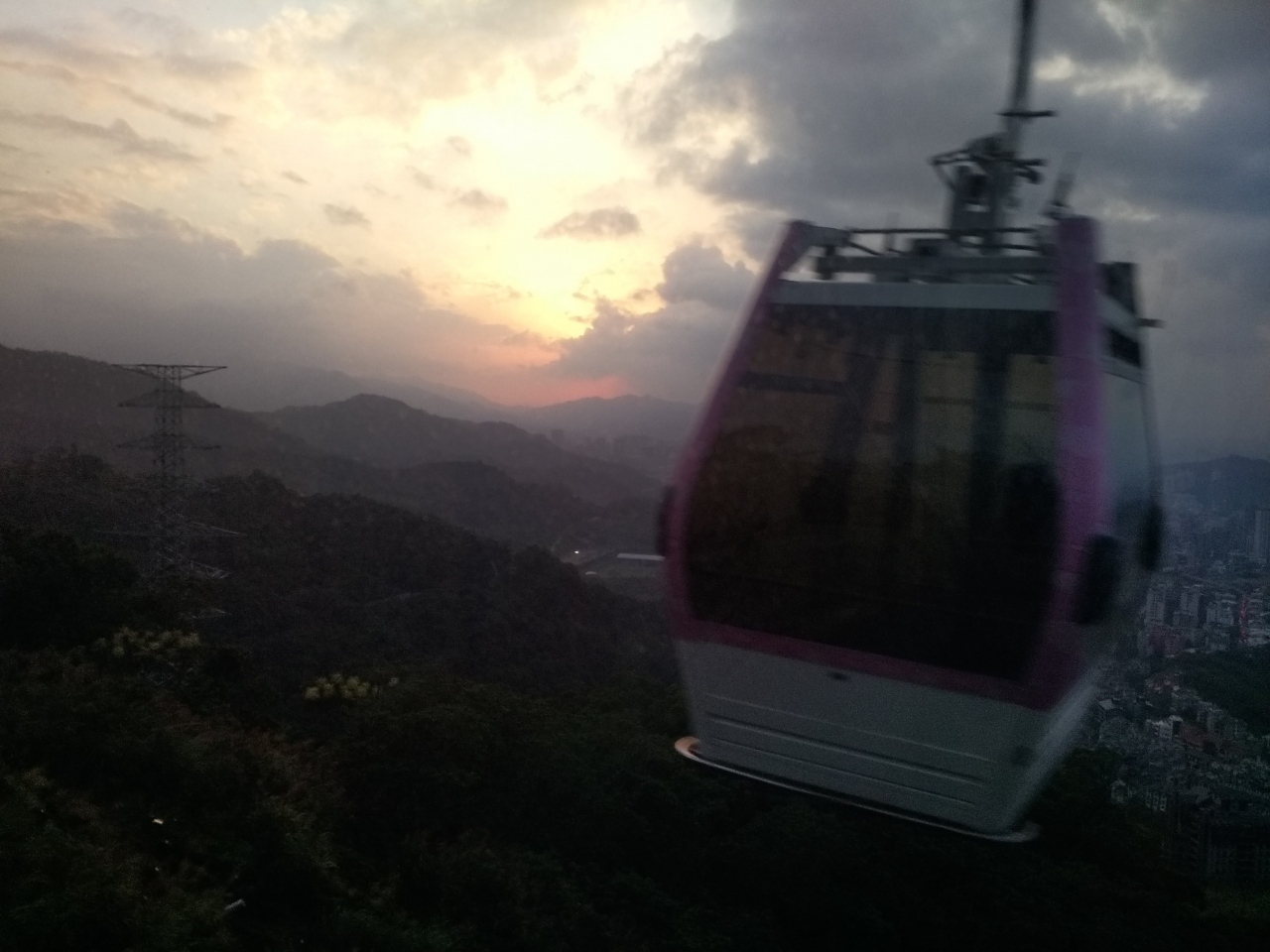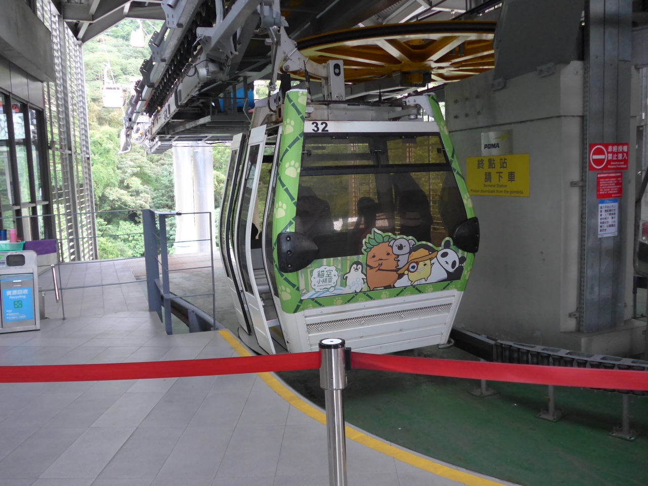 往復の乗車料金は240NT$なので当日の地下鉄利用から換算すればお得なような気がしました。ロープウェイは何と約4Kmととても長くて途中で直覚的に曲がる中継駅もありました。一般車両と水晶(クリスタルキャビン)(床が透明で下が見える)があり一般車両はすぐに乗れますが水晶車両は行列が出来ていて約15分ほど待ちました。