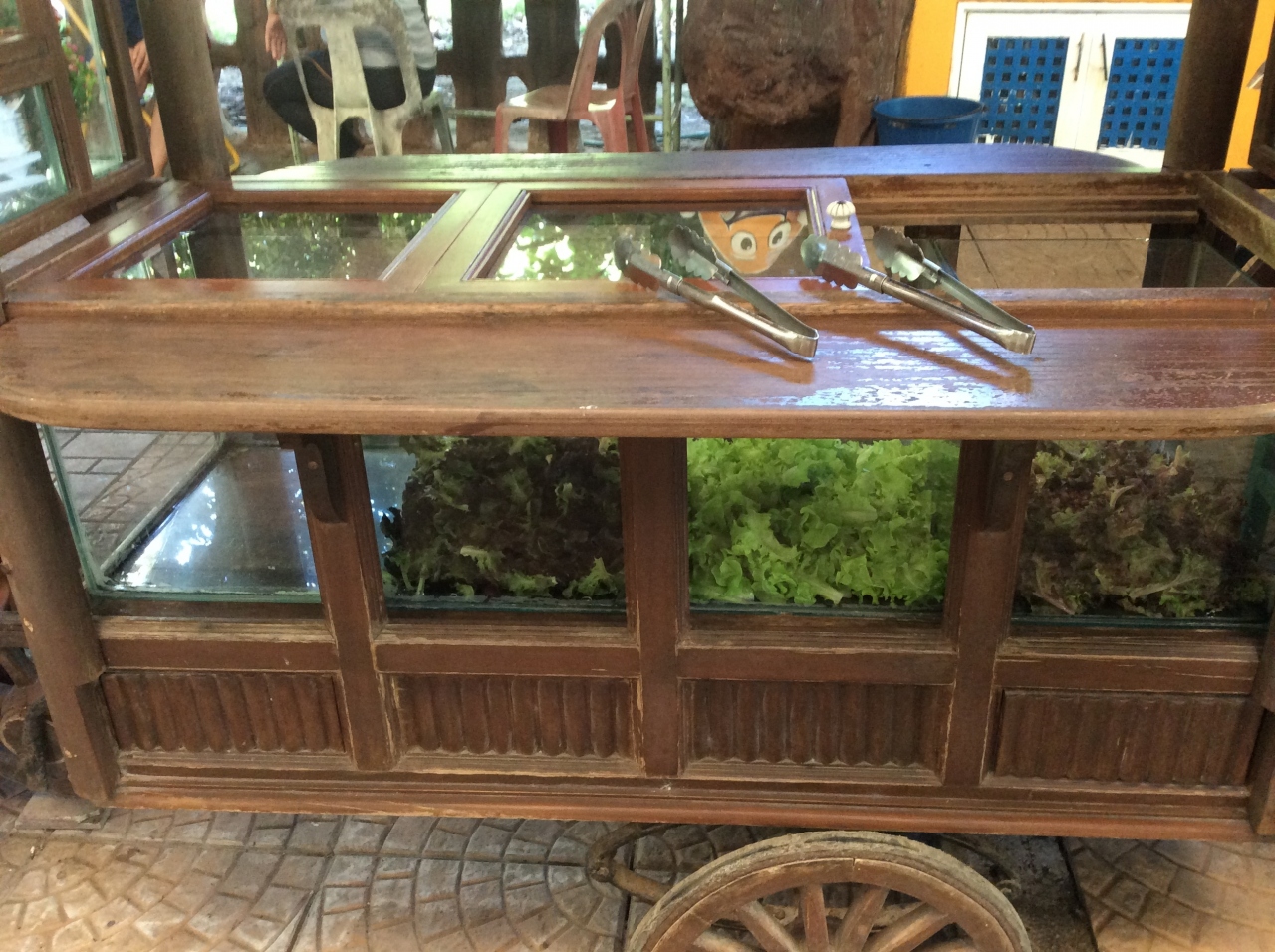 ドリアンやフルーツ、ソムタムや豚や鳥の串焼きが食べ放題でしたが、私たちが一番たくさん食べたのはサラダ菜の食べ放題。