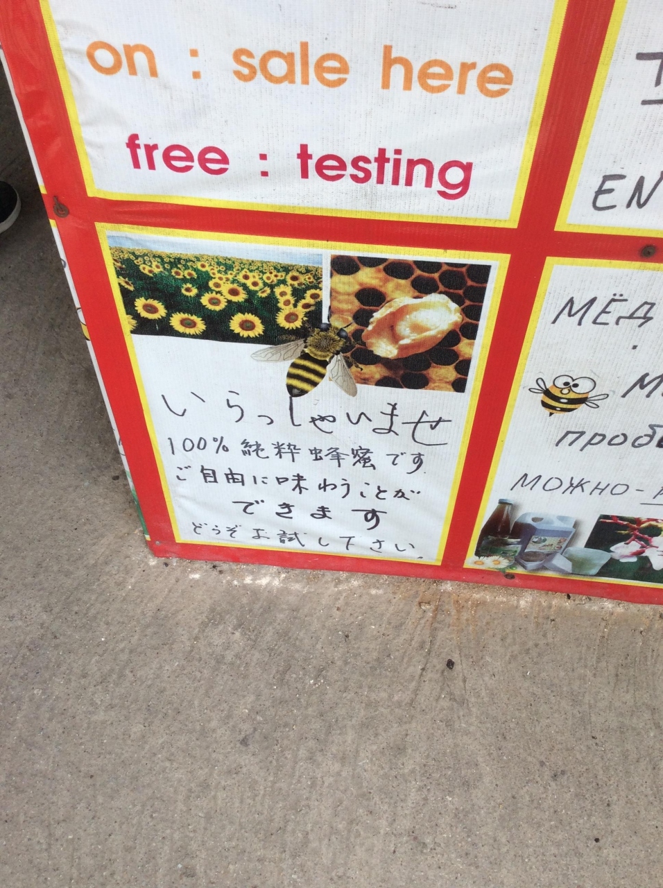 最後にハチミツのブースのところに行きますが、ここで植えられている色んな果実の花が混ざるので、タイで定番で売られているロンコンの蜜より、もっと爽やかな味だったので1本400バーツのを買いました。