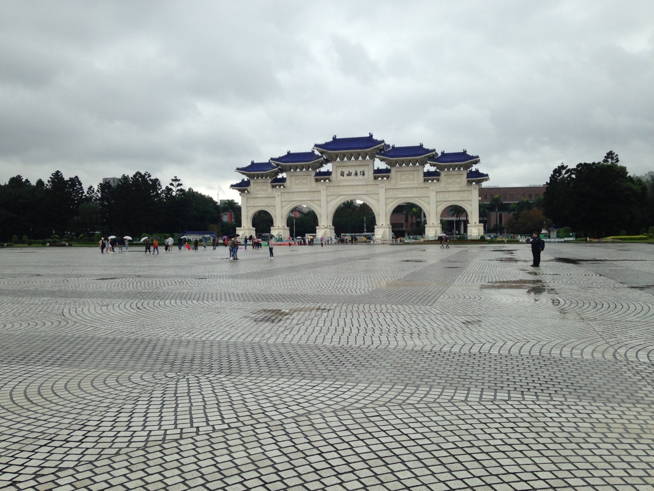 中正記念堂の向かいにある門で五つの塔が合わさって建っており、それぞれ下をくぐれるようになっている。この門から中正記念堂までの広場はきれいな石畳になっており、観光客や地元の学生さんたちなど、多くの方がいました。