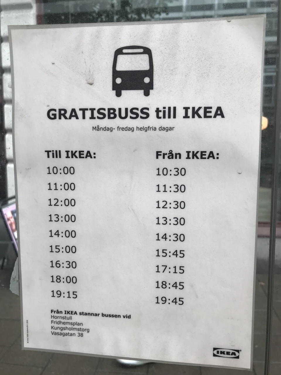昔からよく行っていたイケア。スウェーデンに行くと決めた時からイケアにも立ち寄ることは決めていました。中央駅付近から無料バスが出ているという情報を得たので、雨の日に待っていたものの何故か来ず1度は諦めたのですが、やっぱり行っておきたい!と2度目の挑戦で成功!何故1回目はバスが来なかったのか未だに謎ですがまぁそれはよしとして。30分程で到着。見た目はどの国にもあるような普通のイケアです。が、中が違った!吹き抜けタイプでとにかく広い!そして時間が夕方と中途半端だったから人も少なくラッキーでした。スーツケースの残りの空き容量を考えたら、買えるものはしれていましたが、最後にホットドックをしっかり食べ、再度バスに乗り込みました。特に本場だからこれがすごかった!という商品はありませんでしたが、雰囲気だけでも感じられたのは本当に良かったです!因みにレジはセルフレジで済ませました。簡単でした。