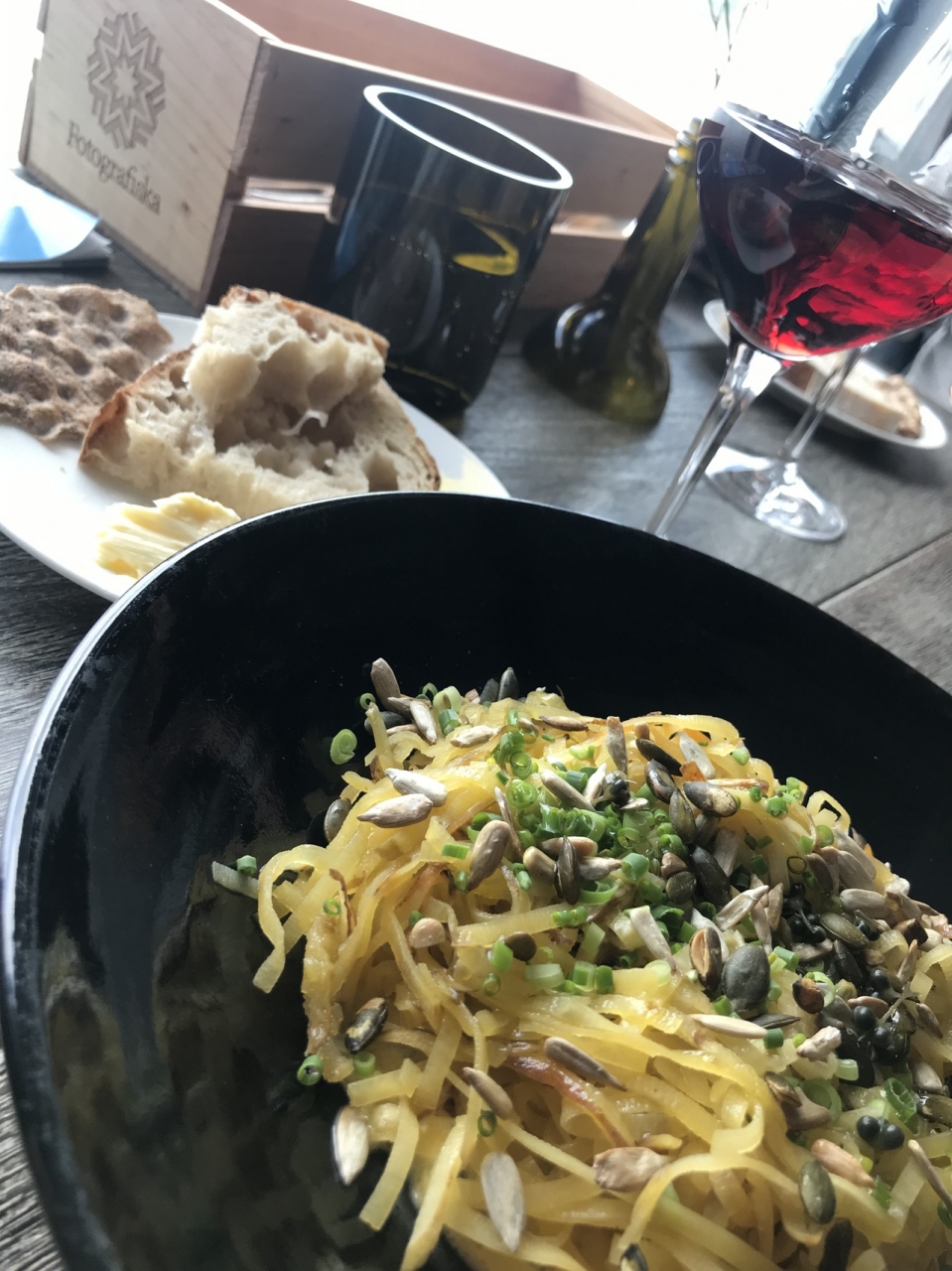 ホップオンホップオフボートに乗り行ってきました。友人の知り合いであるスウェーデン人おすすめ、というここのランチが目当てでした。お腹を空かせて上のレストランに行くと、ちょうど前の人で窓際の良い席が無くなってしまい残念!と思っていたらすぐに空いたので聞いてみたら、快く変更を受けてくださいました。スタッフの年配男性はとても紳士で、メニューの説明も、オーダーの確認も丁寧。とてもいい印象です。料理はヘルシーなものばかりだったので、比較的これならお腹いっぱいになるかな?というイエロービーツパスタをセレクト。パンもワインもいただいたけど、やっぱりちょーっと足りなかったー!美味しかったけど。他にも選択肢はあったと思いますが、正直そこまでこのランチで使いたくない、というのもあり、追加オーダーはしませんでした。展示品はだいぶ変わっています笑。