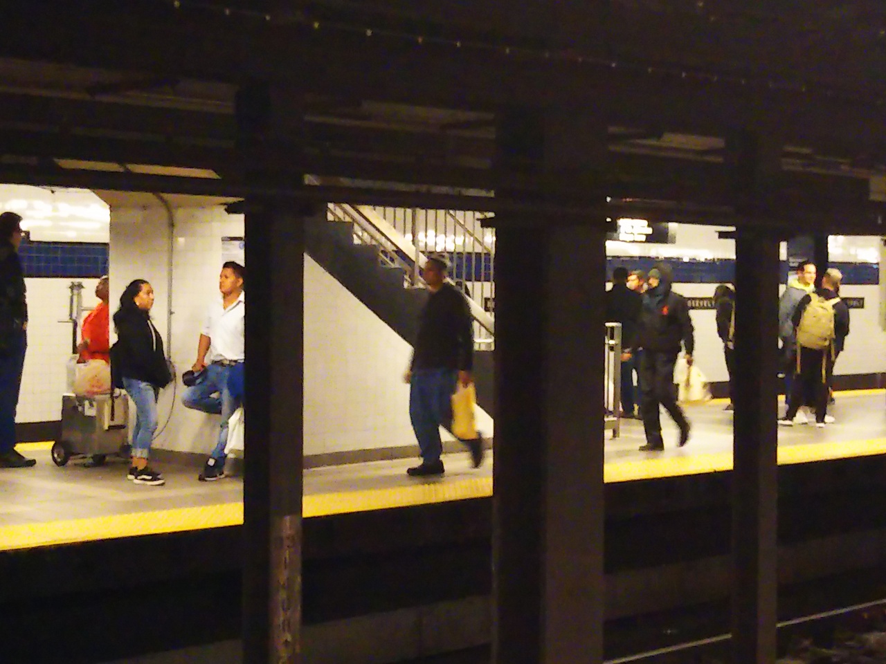 23:30頃到着の便。初のニューヨークなのに航空会社の指示で深夜到着になってしまい、タクシー、シャトル、地下鉄と悩みました。シャトルも3箇所の到着地からは結局地下鉄かタクシー、タクシーはぼったくりと完全なる密室ということを考え、空港バス&地下鉄を選択。思った通り空港職員と乗客ばかりQ70バスで地下鉄Fに。地下鉄駅ではなるべくスーツケースを持った人の近くに。危険な気配なし。降りてからも、6Av.沿いだったので、人いっぱい。安く無事に着きました。帰りは逆、早朝4じくらいだったので、おうちのなさそうな方、深夜行明けの人など、ほぼ寝ている。こちらもマラソンのスタイルなので、これも無事空港到着。