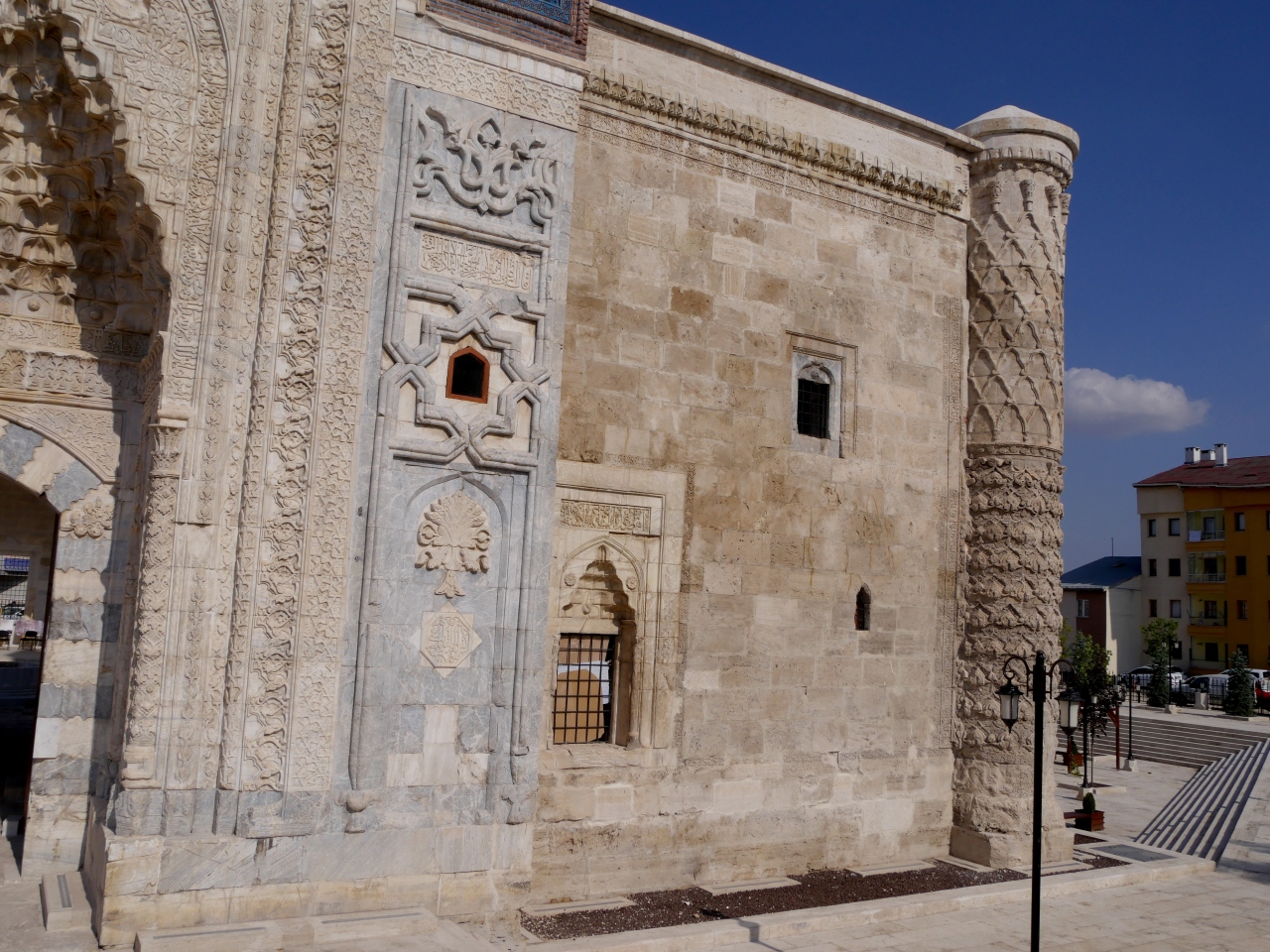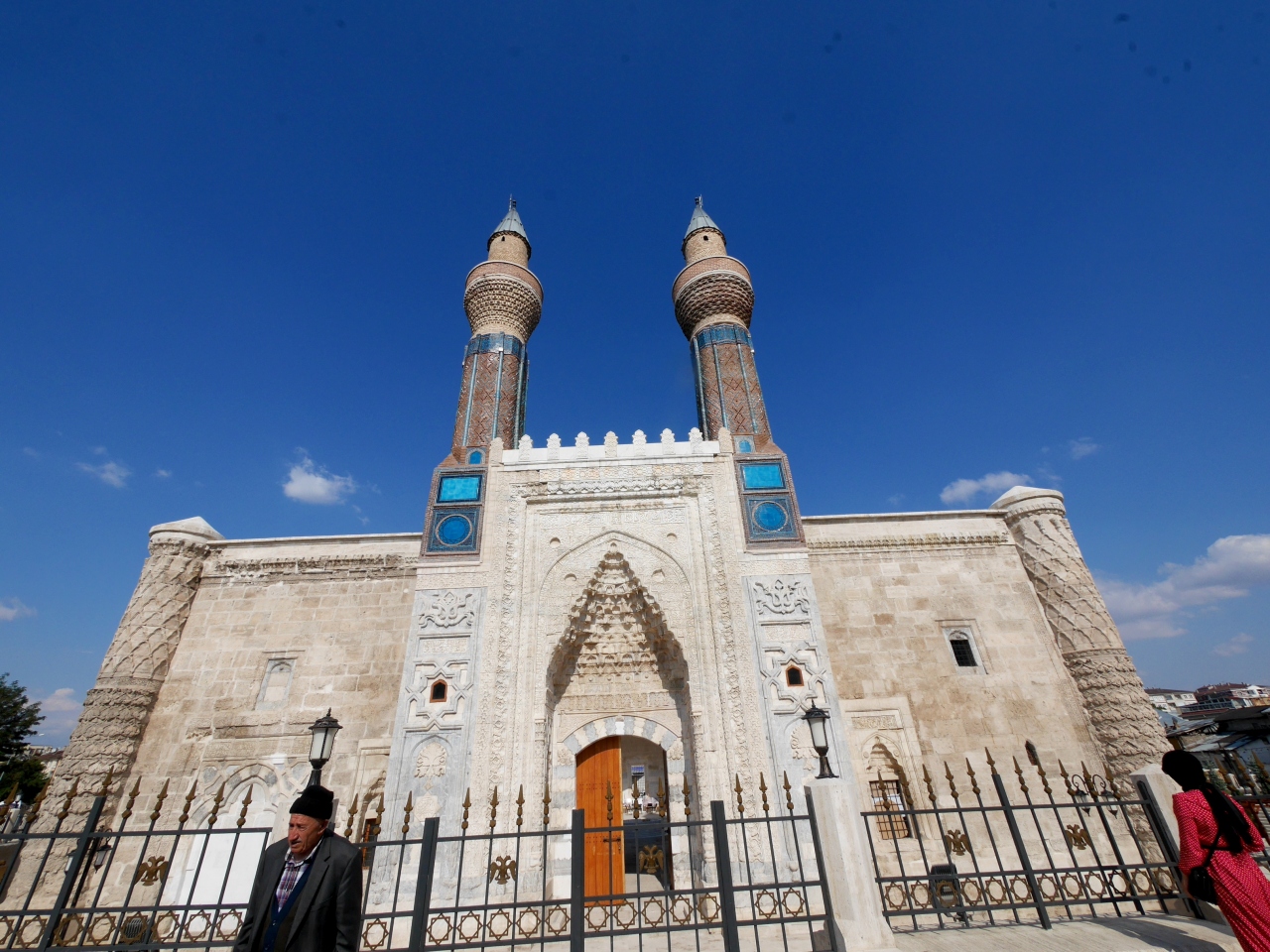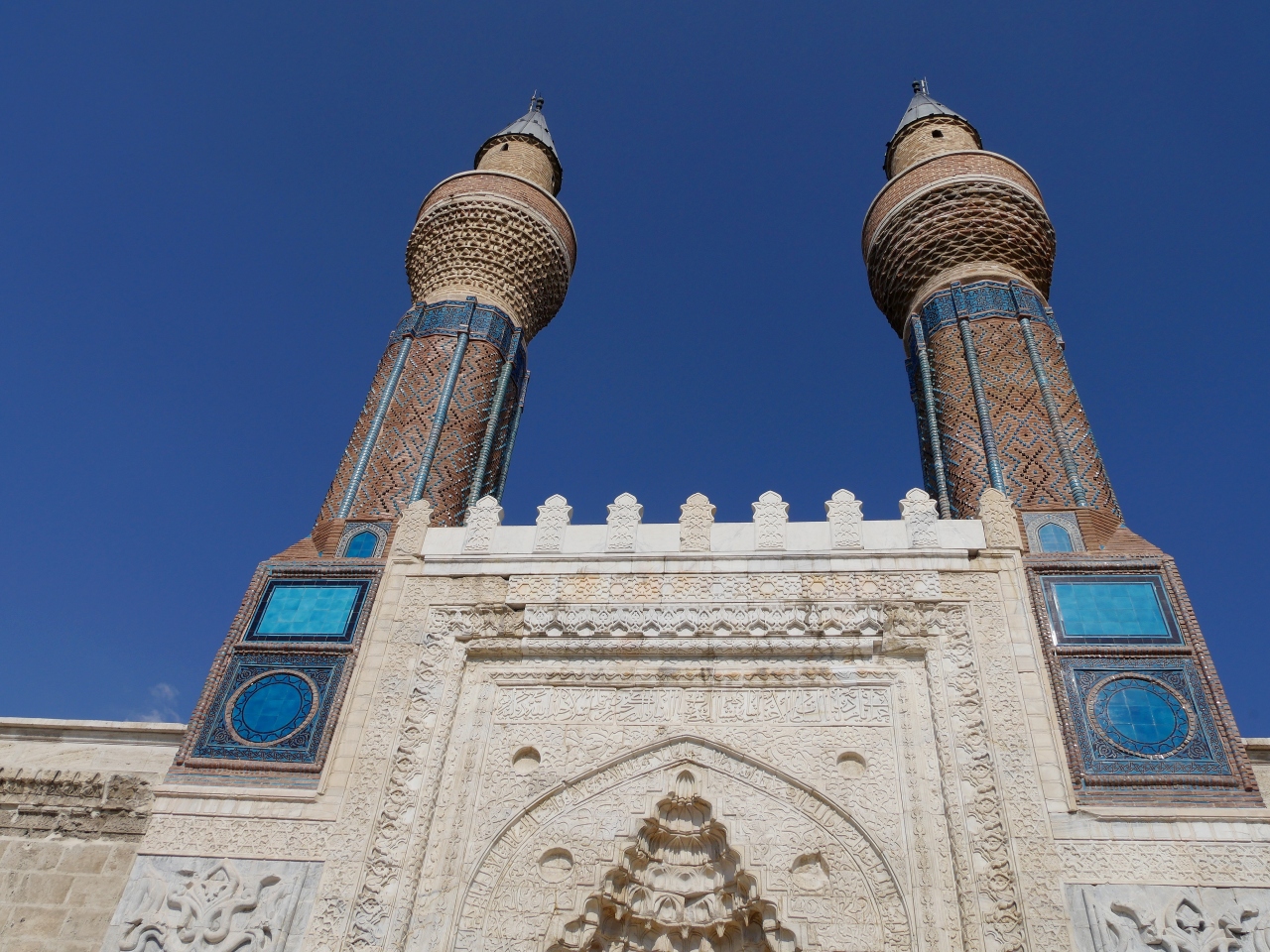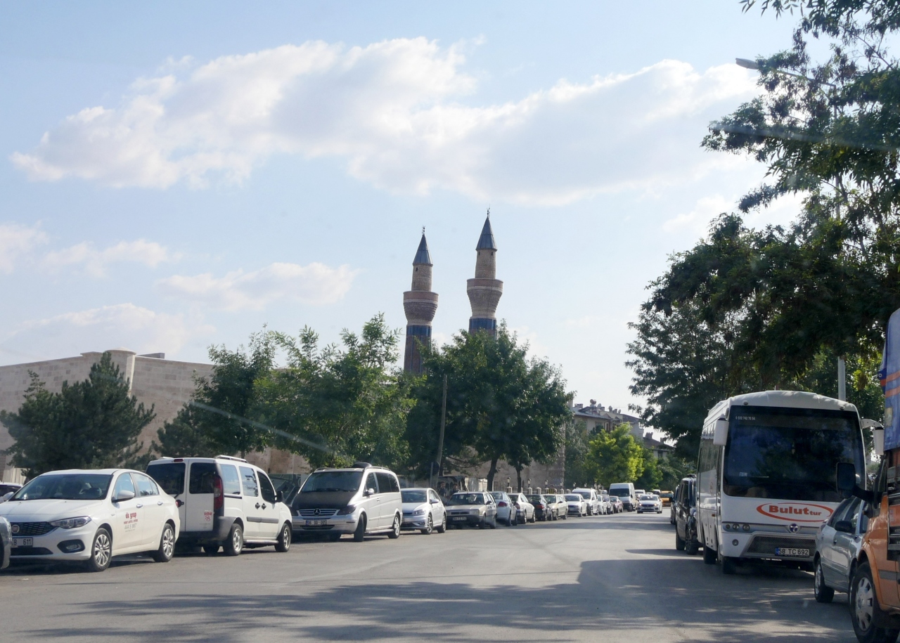 私がSivasで一番見たかったところだ.ギョクとは蒼天の青色の意味 青緑色のタイルに装飾されているので,その名がつけられた.尖塔ミナーレは25m.セルジュク朝の宰相サーヒッブアタ1271年にたてられた.中は修復中で入れないがその美しさは外から出も十分わかる