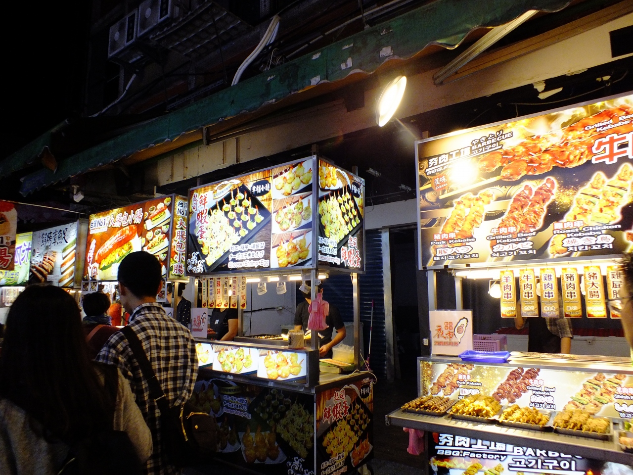 地下鉄の捷運劍潭站を降りると、信号の向こうから夜市が始まっていました。