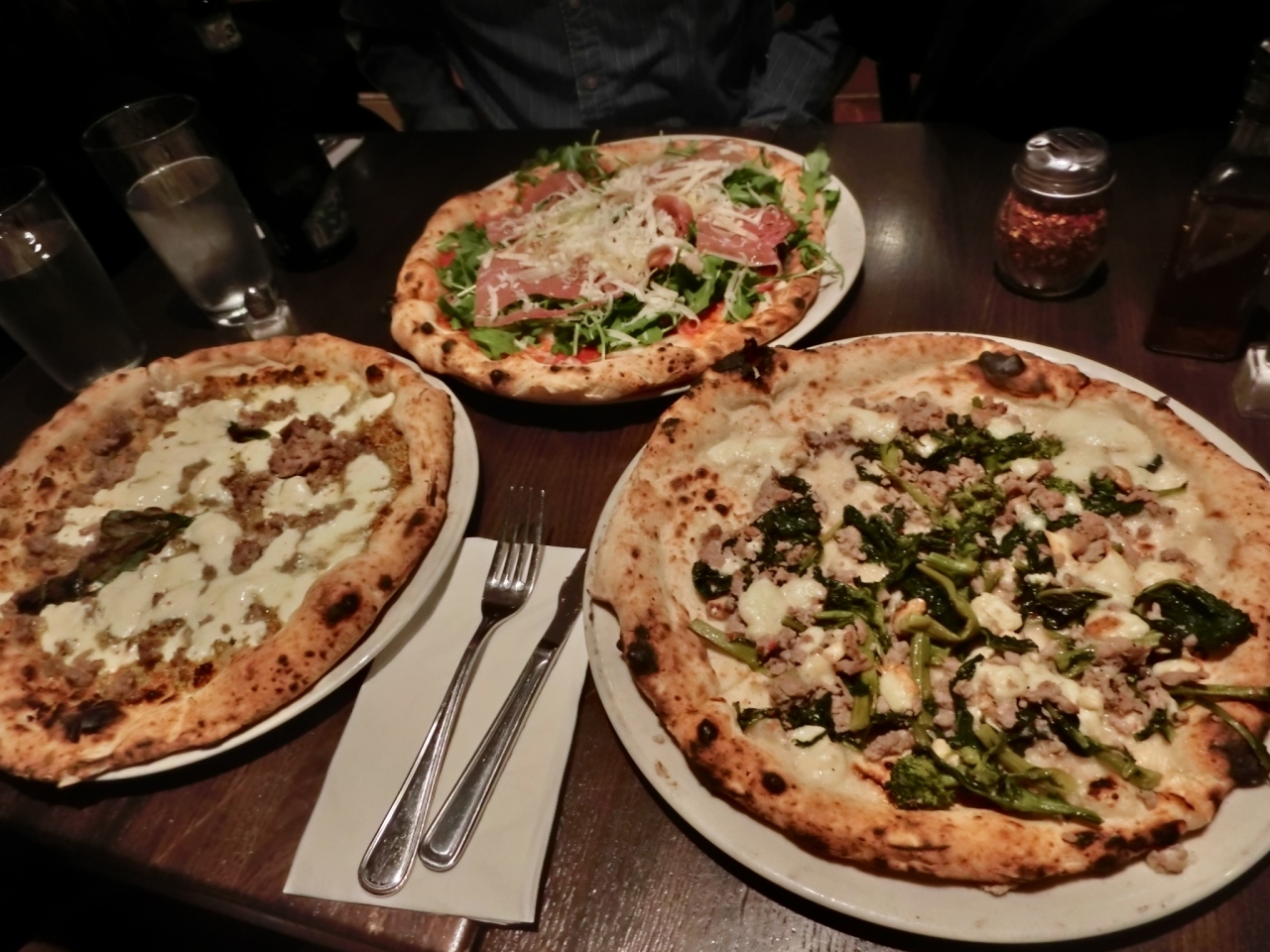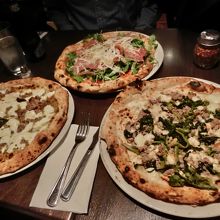 三人で一枚ずつ好みのピザを注文しました。生地は薄くてパリッとしていて軽く、いくらでも食べれそうなおいしいピザでした。