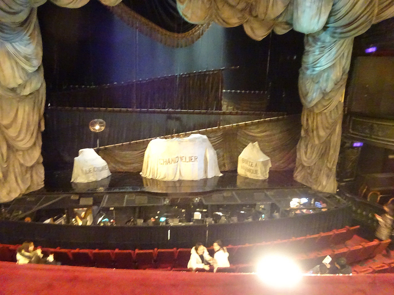 私は目が悪いのでオペラグラスを使いましたが普通の視力の方でしたら役者の表情もしっかり観れる位置だと思います。最前列なども勿論いいのですが…ここの最大の魅力は途中で真上からシャンデリアが落ちてくる迫力を感じることが出来ることでしょう!