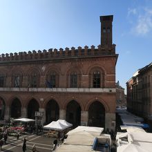 私が訪問した時は、クレモナのお祭りの日だったため市庁舎前の広場は、テントで埋め尽くされていました。