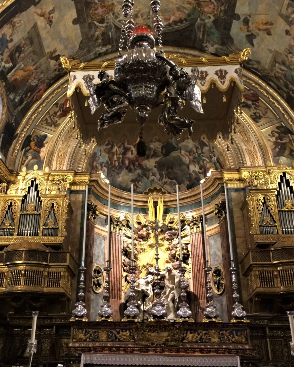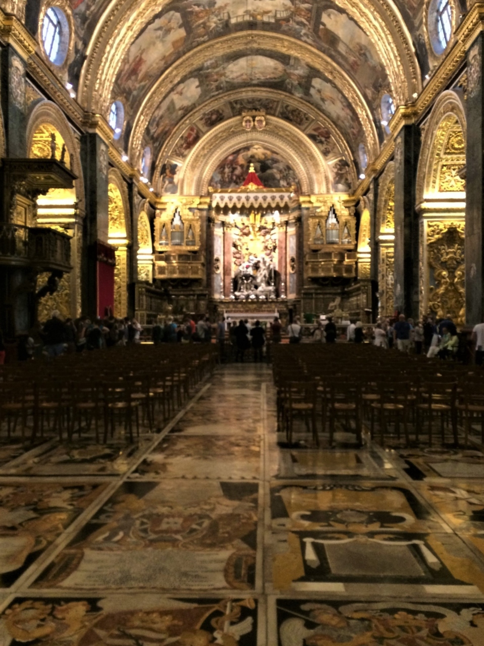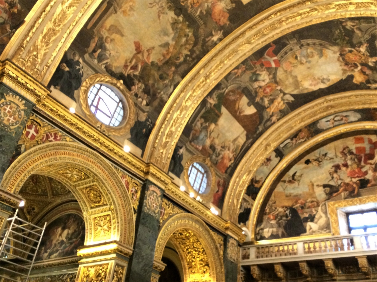 12時頃に訪ねた時は行列ができていたのでランチ後に再訪問して並ばずに入場できました。大聖堂内も混雑はなくゆっくり見学ができました。マルタ騎士団によって建てられた聖ヨハネ大聖堂は想像を超える豪華さで時を忘れての見学になり、ステートルームを見逃してしまいました。どんなに素晴らしくても一息つく所があるものですが、この大聖堂は終始驚きの連続でした。