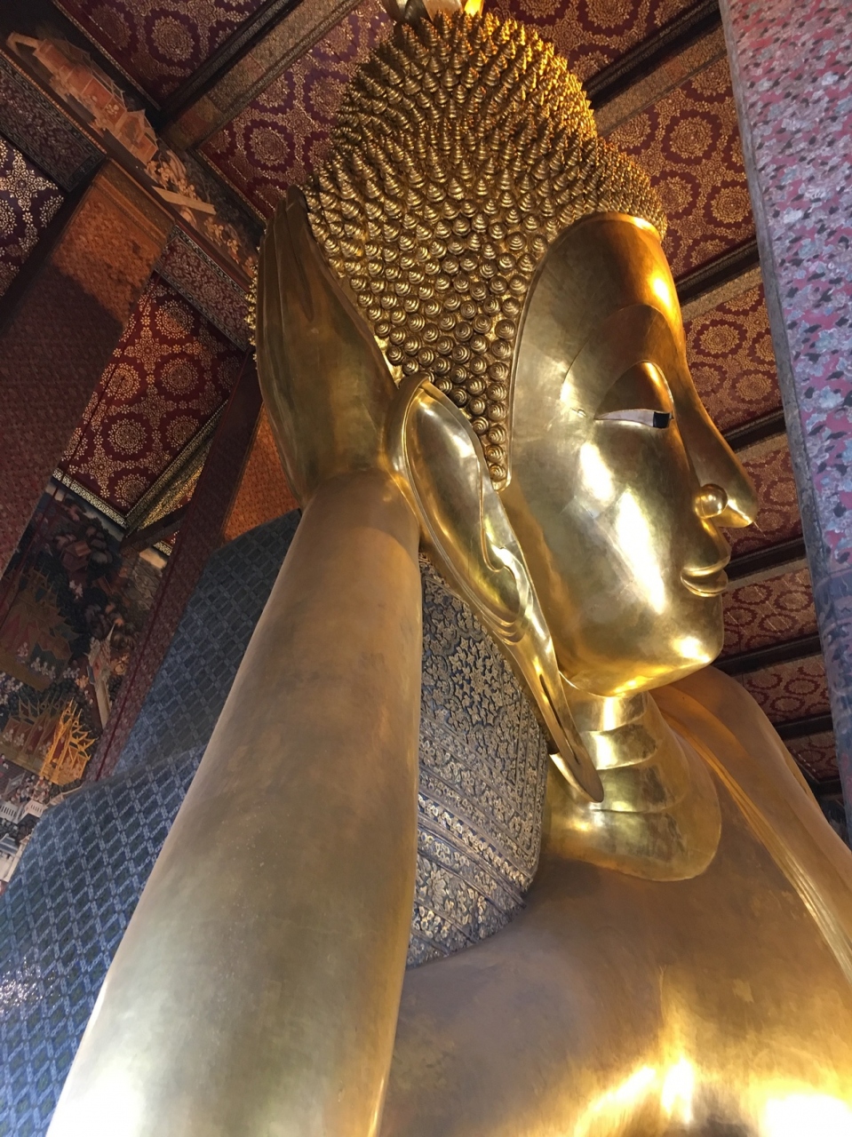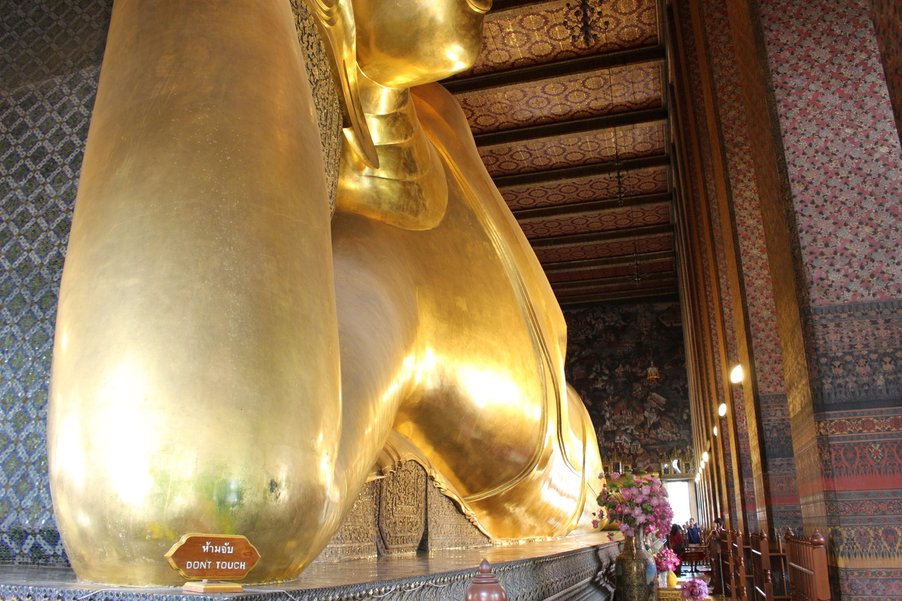 タイ古式マッサージで有名なお寺です。入場料200バーツのチケットには、無料で水がもらえる、と書かれており、中の敷地内でペットボトルの水をもらうことができます。とにかく観光客が多くてゆっくり見る、ということは難しいかもしれませんが、想像以上に大きいお釈迦様はかなり迫力があります。