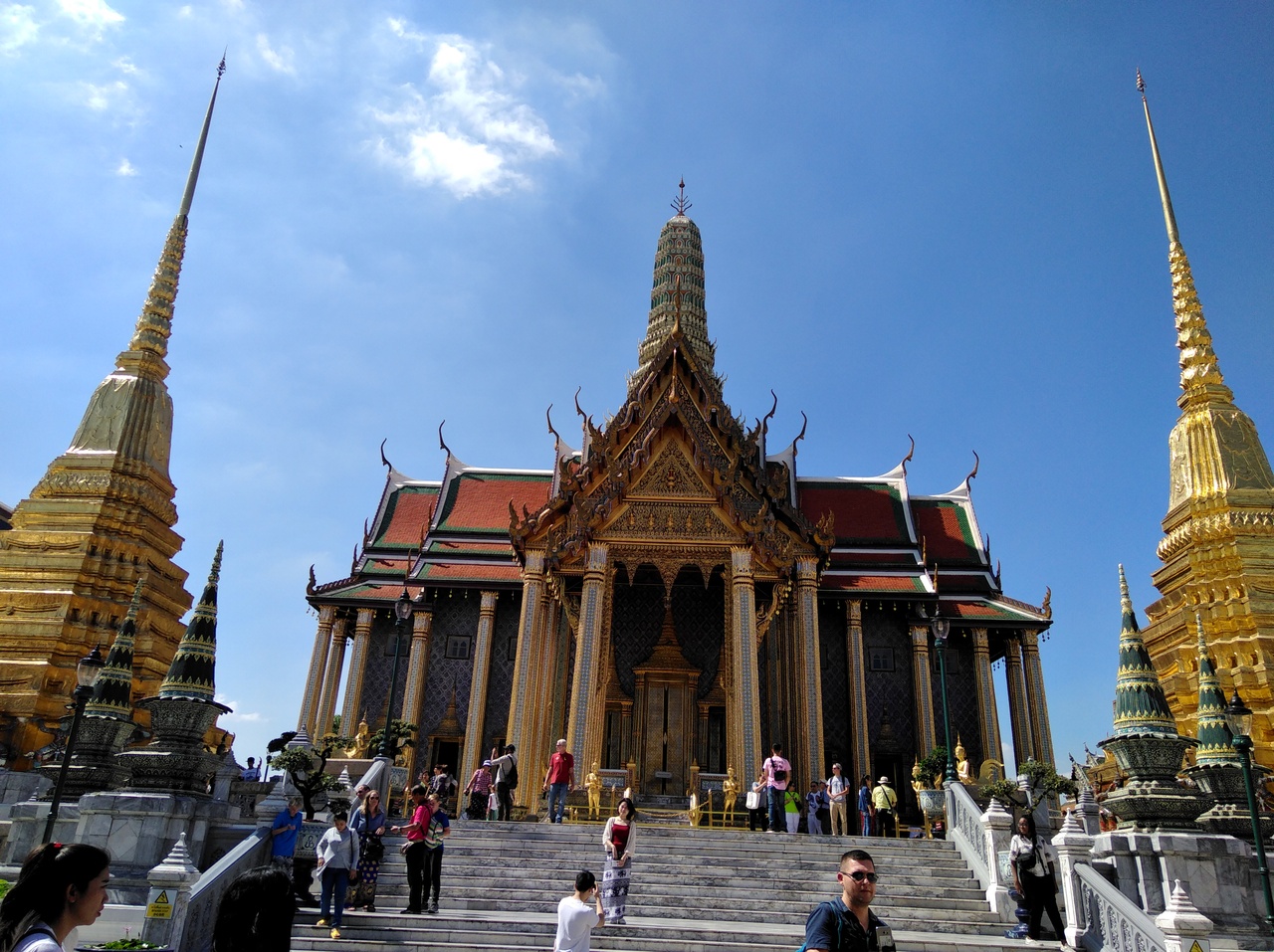 エキスプレスボートに乗り水路から行きました。午前中でしたが既に混雑し始めていました。広大な敷地内に見どころが沢山あり、初めて目にする全てに感激でした。入場料は他と比べると高いですが、見学すると納得できる内容です。初めてのバンコクでは必ず訪れたい場所だと思いました。