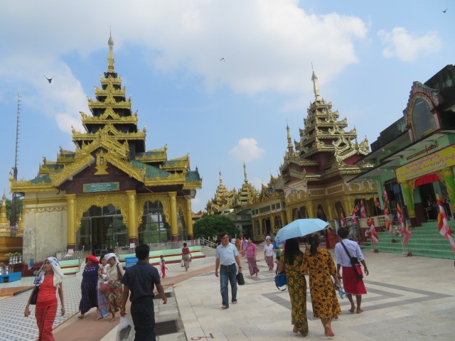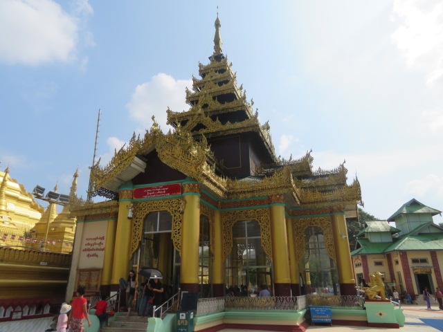 バゴー市街の中心にある大きな寺院でバゴーを代表する見所です、中央に高さ114mの黄金の巨大仏塔があります、ヤンゴンにあるシュエダゴンパゴダより高いです、仏塔の歴史は古く1200年前に出来たようで当時は23mだったようでその後何度か改築されて現在の高さになったようです、中央の仏塔の周りを仏殿や仏塔・仏像を見ながら一周しました、仏像は皆、顔や形が違うので見ながら歩きました、境内建物通路では衣料品など販売されていました、安い物もありました。