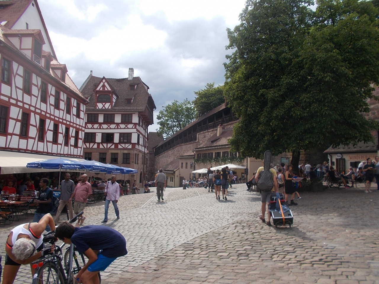 このティアガートナープラッツは旧市街地の西北にある広場です。カイザーブルクのふもとにある広場です。この広場はいくつかの道が集まってきています。そして広場の北側のカイザーブルクへのトンネルの通リにつながっています。広場にはかつての井戸があります。また一角にヂューラーの家があります。人々が集まってきている場所です。