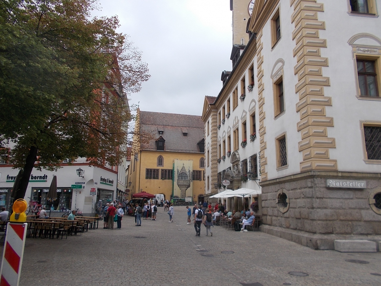 このレーゲンスブルクの市庁舎広場は旧市街地の中心的な場所にある旧市庁舎の南側にあります。広場には青銅の人物像や石でつくられたモニュメントなどもあります。レストランなどがあり人々が多く出ています。広場の面にツーリストインフォメーションがあり帝国議会博物館のチケットが購入できます。