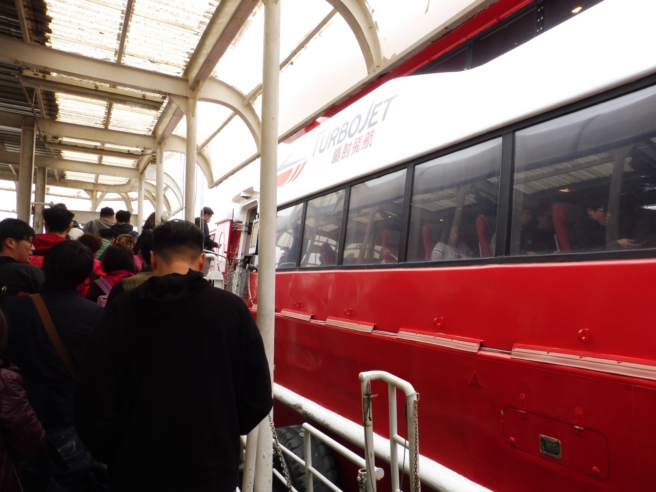 赤い船体の高速艇でマカオと香港間の移動の大動脈です。香港市内ではなく直接香港国際空港に向かう便の設定も有ります。