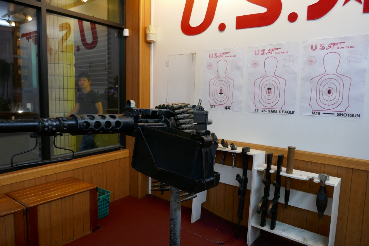 ジャマイカングリルでごはんを食べた後に行きました。義父が見つけてしまって。息子も銃器には興味があるので、射撃をしたそうでした。今回は一番安い、50ドルの357マグナムを撃つコースでした。結構沢山撃ちましたね。指導もちゃんとしてくれます。