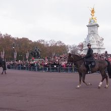 ロンドンのバッキンガム宮殿の前で行われる衛兵交代式です。馬に乗っている衛兵がいたり、楽器で音楽を奏でている部隊がいたりと、かなり大がかりな交代式で見ごたえがありました。30分くらい前に行きましたが、既に多くの観光客が集まってきていました。