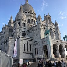 ケーブルカーを降りて階段を上がると荘厳なサクレクール寺院を見上げる事が出来ます。